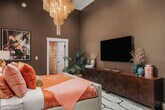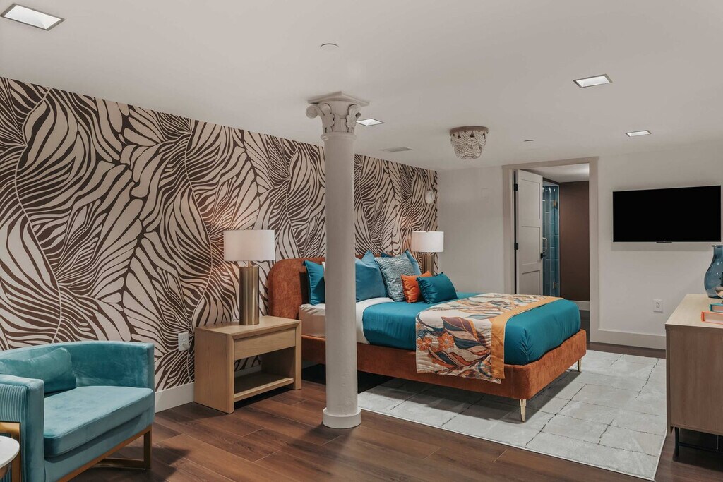 Experience bold luxury and feel at home in the Roxie Suite, a vibrant 4-bedroom, 4-bathroom retreat on the first floor of the historic Starr Piano Building, one of Nashville’s most iconic architectural and musical landmarks. This open-concept suite offers four private sleeping areas, including three elegantly appointed bedrooms and one chic loft, each boasting its own en-suite bathroom. The suite features a vibrant living area with soaring ceilings, bold accent walls, and a glowing neon sign. The fully stocked kitchen with island seating is ideal for casual breakfasts or cocktail hour. A washer and dryer are available for your convenience during longer stays. Smart televisions are included in the living room and all bedrooms for your streaming enjoyment, and high-speed Wi-Fi keeps you connected throughout your stay. A personalized concierge is available to help plan everything from dinner reservations to curated local experiences tailored to your interests. Onsite parking is not available, but several nearby parking garages can be recommended. Car services can also be arranged. Located in the heart of downtown Nashville, the Starr Piano Building puts you steps away from the city's most iconic attractions. Just three blocks from Broadway and next to The Arcade, you're within easy walking distance of world-famous honky tonks, live music venues, rooftop bars, and legendary spots like Ryman Auditorium and Bridgestone Arena. The building sits next to The Arcade, a historic covered passage filled with local coffee shops, galleries, and boutique shopping. Whether you're catching a Titans game at Nissan Stadium, discovering local art at Fifth + Broadway, or grabbing a bite at one of the city's acclaimed restaurants, everything you love about Music City is right outside your door. Quiet hours are from 10 p.m. to 8 a.m. There will be an additional cleaning fee of up to $500 for violations of the house rules or for excessive cleaning required. Renters must be at least 21 years of age and guests under the minimum age must be accompanied by a parent or legal guardian. The property shall not be used by more than the number of adults and children listed in your reservation. Pets are not permitted unless specifically noted in your reservation. Smoking is not permitted on the property (including porches, decks, or outdoor areas) at any time. All guests shall not engage in illegal activity. Please refrain from using decorations that include glitter or confetti or using tape, tacks, or other adhesive on the surfaces. Registration Number: [SI]