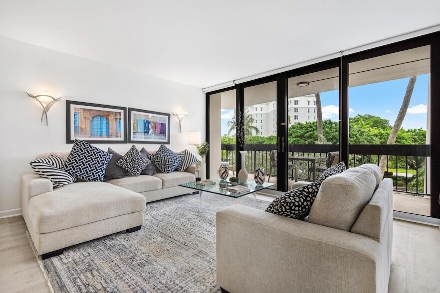 Welcome to your pied-a-terre in the heart of West Palm Beach, where the convenience of condo living meets the spaciousness of a private house. This corner unit at Lincoln Tower boasts 2 bedrooms, 2 fully renovated bathrooms, and approximately 1,500 sq ft of chic living space. The VP flooring flows throughout, complemented by floor-to-ceiling sliding glass doors that flood the unit with natural light and offer serene views of the pool and lush greenery. Modern Amenities, Unparalleled Convenience Enjoy the luxury of updated bathrooms and a versatile third bedroom currently serving as a den with a top-of-the-line built-in Murphy bed. The open-plan living area is perfect for entertaining or relaxing, while two private balconies invite you to unwind amidst the tranquility of an urban oasis