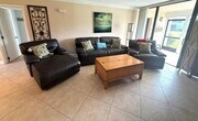 Beautifully furnished 2 bed, 2 bath first-floor condo available for annual lease in the exclusive Ocean Village community on South Hutchinson Island. This fully furnished unit features a split floor plan, open layout, equipped kitchen, ceramic tile throughout, and a cozy screened-in porch. Located near the quiet back entrance for added privacy and convenience. Enjoy resort-style amenities: private beach access, 9-hole golf course, pools & hot tubs, tennis, pickleball, bocce ball, new gym, clubhouse, on-site oceanfront restaurant & tiki bar, plus 24/7 gated security. Just a short distance to the beach! $2,500/month - Security, first & last month required. Furniture, cable, and internet included.