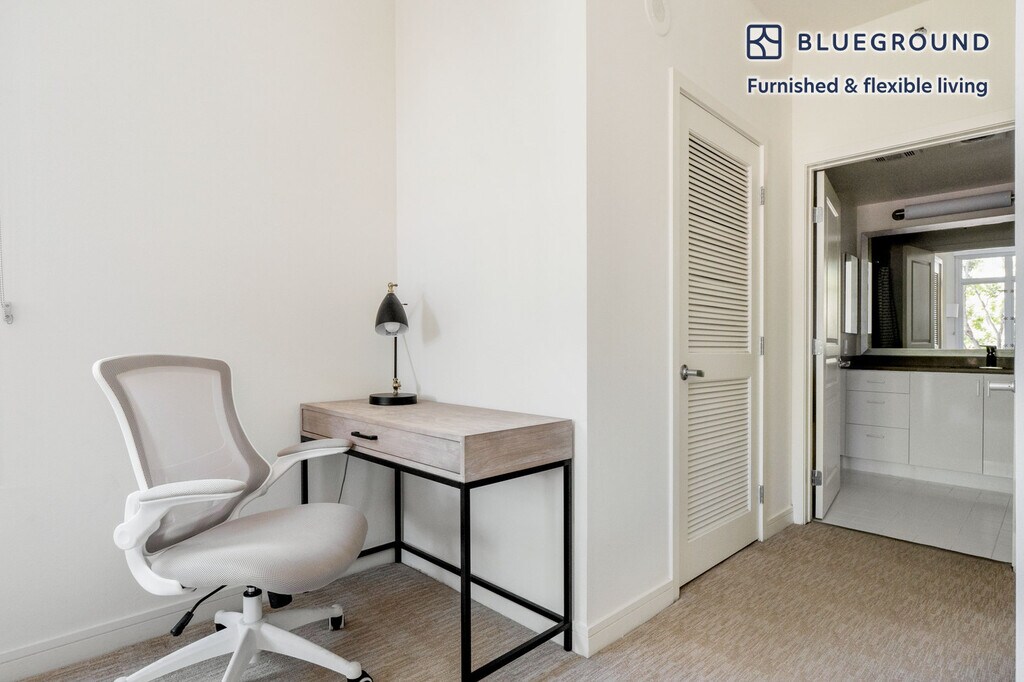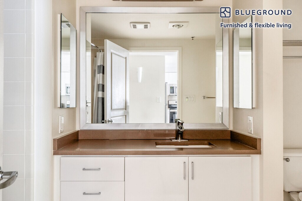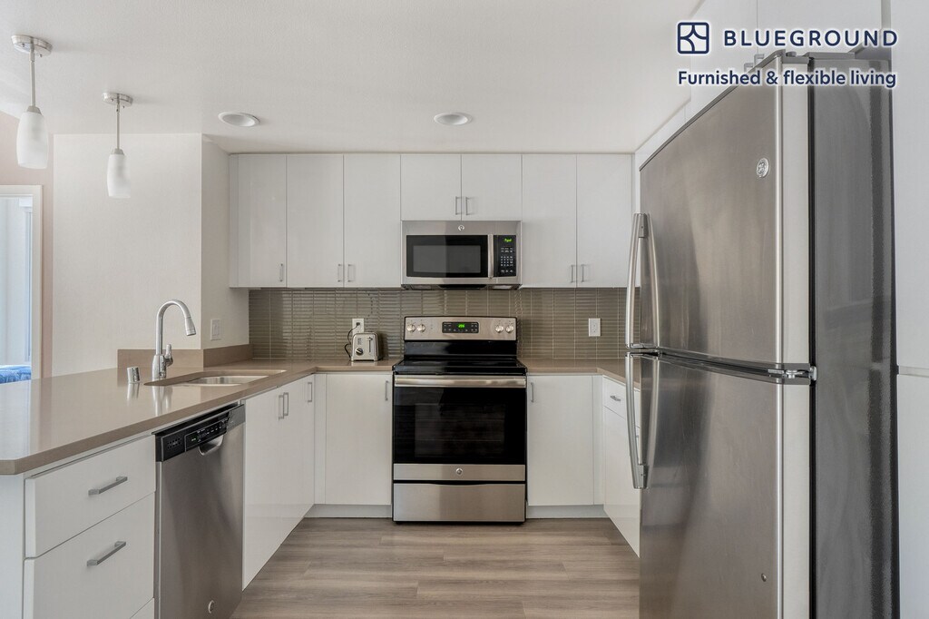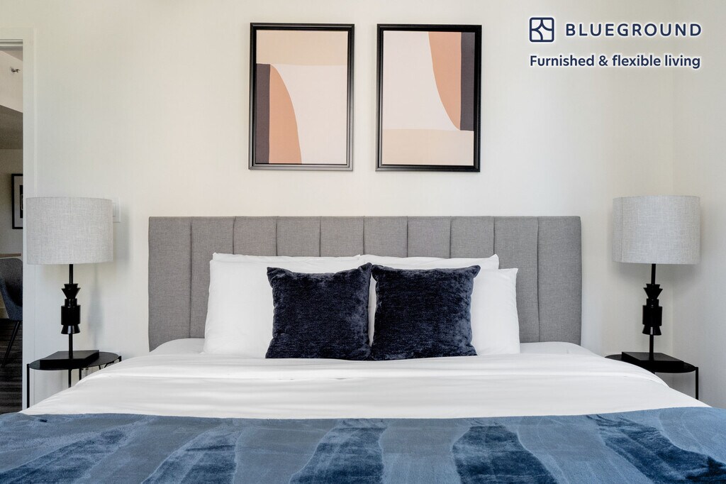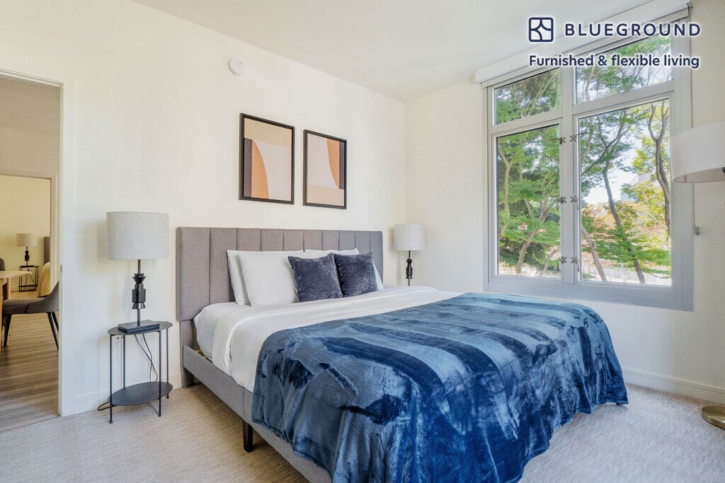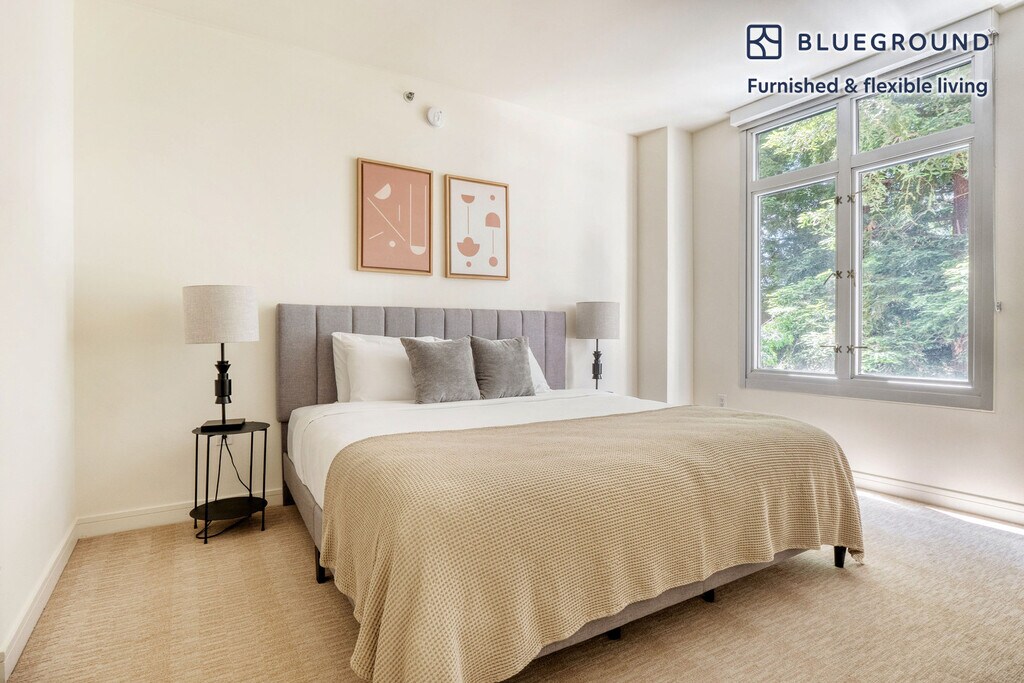 Show up and start living from day one in Mountain View with this comfortable two bedroom Blueground apartment. You’ll love coming home to this thoughtfully furnished, beautifully designed, and fully equipped Mountain View home. (ID #SFO1080) The advertised rate of $3,870/month is the lowest available price, based on a 1 month(s) and 27 day(s) stay with a move-in date of November 25, 2025. If you’re looking for a 1-year stay, the rate is $5,450/month. Rates vary depending on the duration of stay, season, and other parameters. For exact pricing and additional pricing components, please visit our website and enter your desired move-in and move-out dates. The rate is applicable when billed upfront; it can be higher if billed in multiple payments. Brokers are welcome to reach out. Were you looking for an unfurnished lease? Try Blueground instead and upgrade from unfurnished to furnished living: - Furnished at rates comparable to unfurnished - No setup or furniture costs - save thousands - Move-in ready - save time, just bring your suitcase Designed with you in mind Thoughtfully designed with bespoke finishes, modern furnishings, and a fully equipped kitchen, you’ll enjoy that “I’m home” feeling with this Blueground apartment. Whether you’re lounging in your cozy living room streaming the latest and greatest entertainment on the smart TV or premium wireless speaker, or getting some well-earned rest on the superior quality mattress with luxury linens, you’ll fall in love with everything this Mountain View apartment has to offer. This apartment also offers in-apartment laundry. Sleeping arrangements King Bed, 70.8in/180cm Queen Bed, 63in/160cm Amenities Building amenities unique to this two bedroom apartment include an on-site: - BBQ Area - Doorman - Dryer - Elevator - Swimming pool - Washing machine - Lounge - Parking - Pets allowed Arrival and ongoing support The entire apartment is yours to enjoy! Throughout your stay, you’ll have access to our Client Experience team through the Blueground App. You can schedule additional cleanings, submit maintenance requests, and view our neighborhood recommendations with just a few taps. We’ll share all details upon confirmation of your stay. Ideally Located This furnished home is located in Mountain View, in Santa Clara County. It is named for the unbeatable views of the Santa Cruz Mountains. Situated in the southern end of the San Francisco Bay Area, residents enjoy the many parks, specifically Shoreline Park, which is the largest in Mountain View and includes an amphitheater and golf course. Go for a walk or run on the San Francisco Bay Trail. In addition, Stevens Creek goes through Mountain View and empties in Shoreline. A paved path for pedestrians and bikes runs alongside the creek, which is ideal for nature lovers. The nearby cities of Palo Alto, Los Altos and Sunnyvale are all easily connected by bus and rail service. Other things to note Building amenities may have an extra cost. This Blueground apartment has flexible lease options, allowing you to book it for one month, a year, or more. Pets are welcome, though weight limits and breed restrictions apply and may incur fees. Parking is offered based on availability and is subject to a fee. We take great pride in ensuring every photo displayed is shot in our own units with our actual furnishings. That said, we regularly refresh our decor and furniture arrangement, which may differ from what’s pictured. Also note - This apartment is located in a quiet and peaceful area - This apartment has high ceilings - This apartment does not have curtains in the living room [SI]
