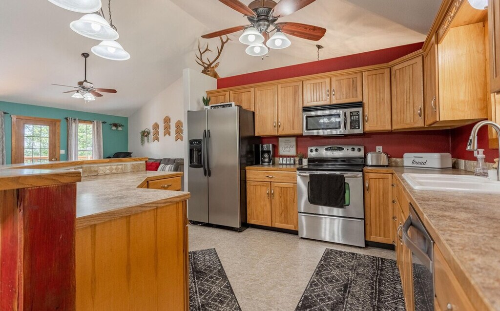 Enjoy lovely views at this retreat while still being close to all the attractions. Sit out on the back deck and enjoy a breathtaking view of the Ozark mountains or sit on the front deck or at the fire pit and watch your children play on the tire swing and pool. This home is great for church retreats, family gatherings, you name it! We hope your stay here will be restful, invigorating, and productive. Write that book you've always wanted to write, or get away from it all for rest and relaxation. This is a newly acquired home so we are still getting everything set up. There have been a few changes we have not gotten photos of yet, one of the rooms has a toddler bed in addition to a queen. There are also a couple desks to work on now. While we're waiting for a custom dining table, we have a 6ft folding table with 8 seats available in the dining area. There are also 4 stools at the bar top on the island. Let us know if you need more seating and we are happy to accommodate! There is a second living space on the bottom level with 3 bunk beds that we can add a second air mattress to as well. The whole house is accessible with the exception of the garage and garage apartment. Guests must be a minimum of 25 years or older to book. We have a sweet Great Pyrenees guardian dog puppy in a pen we are training. If you plan to bring a pet, let us know in advance. As this is a newly acquired home and due to renovations, photos may not be completely representative of what's available. If there is anything you are expecting, check with us before booking so we can make the experience as enjoyable as possible for you! [SI]