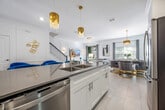 Step into opulence and delight at this exquisite 5-bedroom townhome. Admire the captivating Frozen and Mickey-themed bedrooms and relish boundless happiness at the fantastic private pool area. Whether you plunge into a revitalizing swim or unwind poolside, the experience is unparalleled. Additionally, the Storey Lake resort's clubhouse provides an array of recreational activities, enhancing the enjoyment of your vacation. For extra excitement, venture to the nearby Disney Theme Parks, stores, and restaurants, all within minutes. Indulge in the lap of luxury at this exquisitely adorned villa designed to accommodate up to 12 guests. Upon entry, a spacious living room seamlessly blends with the dining area and fully equipped kitchen, creating an ideal space for entertainment. Every detail has been meticulously prepared to ensure a comfortable stay. The kitchen is equipped with all essential amenities for cooking and dining convenience. Outside, be enchanted by the amazing private heatable pool area. This property features 5 bedrooms across two floors. On the first floor, a charming bedroom with a queen bed and a delightfully fun Mickey-themed bedroom with two double beds share a well-appointed bathroom. Upstairs, luxuriate in two king suites and a beautiful Frozen-themed bedroom featuring two single beds, complete with its private bathroom. In addition to the splendid bedrooms and entertainment spaces, guests can enjoy complimentary amenities such as free Wi-Fi, convenient parking, and a dedicated laundry area furnished with a washer and dryer. A thoughtful welcome package awaits, providing basic bathroom and kitchen supplies for your comfort. Pool heating is a paid service and there is also a fee charged to use the barbecue grill. The Storey Lake Resort offers it all, situated around a scenic lake with a variety of water amenities and activities. Hideaway Club tropical resort-themed features a large pool with lazy river, two waterslides, and children's splash pad. Relax in the spa or sunbathe on the terrace and sand beach areas. Fishing, canoe and kayak rentals are available at the community dock. Enjoy a cold beverage or ice cream at the resort’s poolside café. Don’t forget to get in a game of mini-golf, volleyball, or basketball. Escape the sun at the covered tiki bar or venture inside the resort’s clubhouse, which includes a guest lounge area, fitness center, and business center. Quiet hours are between 22:00 and 8:00. Replenishment of bathroom and kitchen amenities is the guest's responsibility.