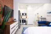 This brand new studio apartment is located on the Upper East Side of Manhattan, in the heart of the neighborhood. The location is ideal for both business and leisure travelers, with many restaurants, bars, shops, and other amenities nearby. The apartment is conveniently located near subway stations, with the Q train only a 2-minute walk away and the 6 train about 5 minutes away. This studio is a brand new and fully renovated apartment offering a comfortable and luxurious living experience. It features a spacious living room lounge, a cozy bedroom with a queen-size bed and memory foam mattress, a full bathroom, a fully equipped kitchen, and an in-unit washer and dryer. The apartment boasts high-quality renovations, new furniture, ample natural light through two big windows, and complimentary clean linens and towels. Guests will enjoy the added convenience of complimentary high-speed wireless internet and 120 HD cable channels, making it an ideal choice for a memorable New York City vacation or a comfortable and convenient stay. Under 15-pound dogs are allowed with a $350 pet fee. One pet is allowed. The neighborhood offers a variety of dining and shopping options, with many highly recommended restaurants, bars, and trendy shops nearby, as well as various amenities such as supermarkets, pharmacies, coffee shops, delis, fast food, nail salons, cleaners, and bank services. The area is considered convenient with plenty of options. Getting around East 75th Street can be done by walking, biking, or taking public transportation such as the subway or bus. The subway has several stations located near East 75th Street, including the 72nd Street subway station on the 1, 2, and 3 lines, the 77th Street subway station on the 6 line, and the 86th Street subway station on the 4, 5, and 6 lines. Additionally, several bus lines run through the area, making it easy to get around. Taxis, Ubers, and other ride-hailing services are also available, making East 75th Street a well-connected location for transportation. Guests can contact the host for any problem or question they may have, which will be handled personally. There is a personal check-in and welcome home tour for every guest, with the option for remote check-in as the building and apartment have an electronic smart lock key. No smoking and no parties are allowed. Guests are asked to keep quiet and respectful for their neighbors and to follow trash recycle rules. New York City's heating season is until the end of May, and window air conditioning will be installed beginning around mid-April. Guests can request an earlier installation if needed. Guests will enjoy the added convenience of complimentary high-speed wireless internet, making it an ideal choice for remote work.
