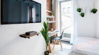 Feel at home in this comfortable and convenient studio apartment, centrally located in the Gramercy Park area of NYC. This fully furnished apartment features a cozy queen-size bed, a fully equipped kitchen, and a washer and dryer, ensuring a seamless living experience. With A/C and heat, comfort is guaranteed regardless of the weather, while a 40" flat-screen TV and free Wi-Fi provide ample entertainment options. This studio apartment is thoughtfully furnished with stylish and modern decor, ensuring a comfortable stay. The fully equipped kitchen includes a refrigerator, oven, stove, microwave, coffee maker, toaster, utensils, dishes, and cookware, allowing you to prepare meals with ease. The bathroom comes with fresh towels, and the washer and dryer make laundry convenient. Additional amenities include air conditioning, heating, a 40" flat-screen TV, free Wi-Fi, an iron/ironing board, and a hair dryer, all designed to enhance your stay. Located on East 24th St, this studio apartment is ideal for both business and leisure travelers. The vibrant Gramercy Park area is known for its tree-lined streets, historic architecture, and beautiful parks. Just a short walk from the famous Gramercy Park, the apartment is surrounded by popular restaurants, bars, cafes, and shops. Its proximity to several subway lines makes it easy to navigate the city, with quick access to Times Square, the Empire State Building, and other attractions. New York City's heating season lasts until the end of May. Starting mid-April, window air conditioning will be installed in the apartment. You can request an earlier installation if needed. [SI]