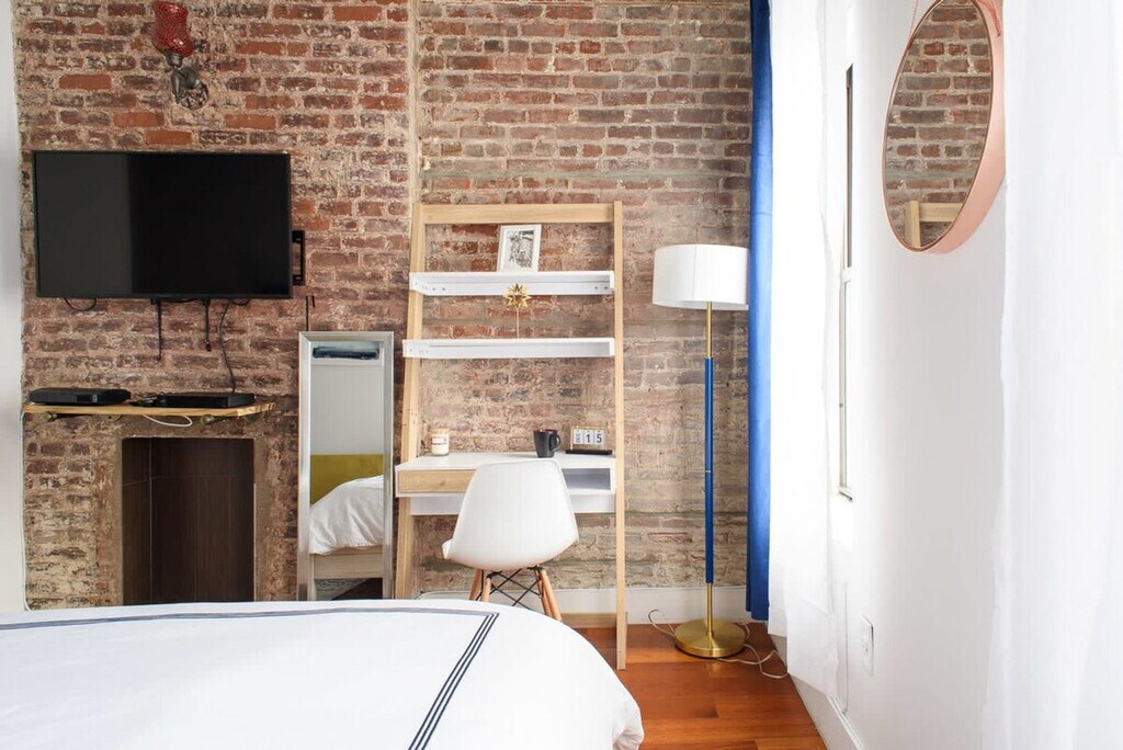 This studio apartment is nestled in the desirable Gramercy Park area of New York City, renowned for its prime location near popular attractions like Union Square and Madison Square Park. Fully furnished and accessorized, it offers a comfortable, move-in ready space, perfect for those looking to feel at home. With easy access to NYU and other key points of interest, this apartment is ideally situated for exploring the city. The apartment boasts a modern and chic design, featuring a comfortable queen-size bed and a fully equipped kitchen. Amenities include a 40-inch flat-screen TV, luxurious linens and towels, and an in-unit washer and dryer. With classic New York charm, the apartment showcases exposed brick walls and modern furnishings. It also offers strong air conditioning, central heating, a hair dryer, iron and ironing board, and free Wi-Fi and cable TV, ensuring you have everything you need to feel at home. Located on East 24th St, this studio apartment is perfect for both business and leisure travelers. The Gramercy Park area is a vibrant and safe neighborhood, known for its tree-lined streets, historic architecture, and beautiful parks. Just a short walk from the exclusive Gramercy Park, the apartment is surrounded by popular restaurants, bars, cafes, and shops offering diverse dining and shopping options. With several subway lines nearby, including the 23rd Street station serving the 6, N, R, and W trains, and easy access to bus routes, taxis, and ride-sharing services, getting around the city for business or leisure is convenient. The location also provides quick access to iconic destinations like Times Square and the Empire State Building.