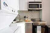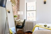 This studio apartment is nestled in the desirable Gramercy Park area of New York City, renowned for its prime location near popular attractions like Union Square and Madison Square Park. Fully furnished and accessorized, it offers a comfortable, move-in ready space, perfect for those looking to feel at home. With easy access to NYU and other key points of interest, this apartment is ideally situated for exploring the city. The apartment boasts a modern and chic design, featuring a comfortable queen-size bed and a fully equipped kitchen. Amenities include a 40-inch flat-screen TV, luxurious linens and towels, and an in-unit washer and dryer. With classic New York charm, the apartment showcases exposed brick walls and modern furnishings. It also offers strong air conditioning, central heating, a hair dryer, iron and ironing board, and free Wi-Fi and cable TV, ensuring you have everything you need to feel at home. Located on East 24th St, this studio apartment is perfect for both business and leisure travelers. The Gramercy Park area is a vibrant and safe neighborhood, known for its tree-lined streets, historic architecture, and beautiful parks. Just a short walk from the exclusive Gramercy Park, the apartment is surrounded by popular restaurants, bars, cafes, and shops offering diverse dining and shopping options. With several subway lines nearby, including the 23rd Street station serving the 6, N, R, and W trains, and easy access to bus routes, taxis, and ride-sharing services, getting around the city for business or leisure is convenient. The location also provides quick access to iconic destinations like Times Square and the Empire State Building. [SI]
