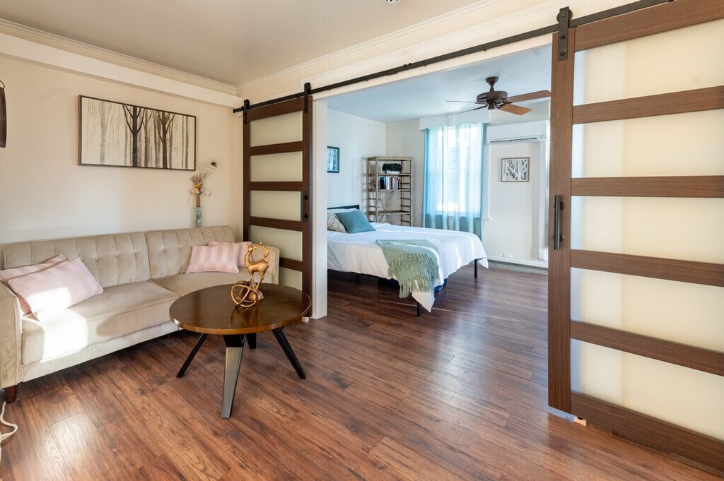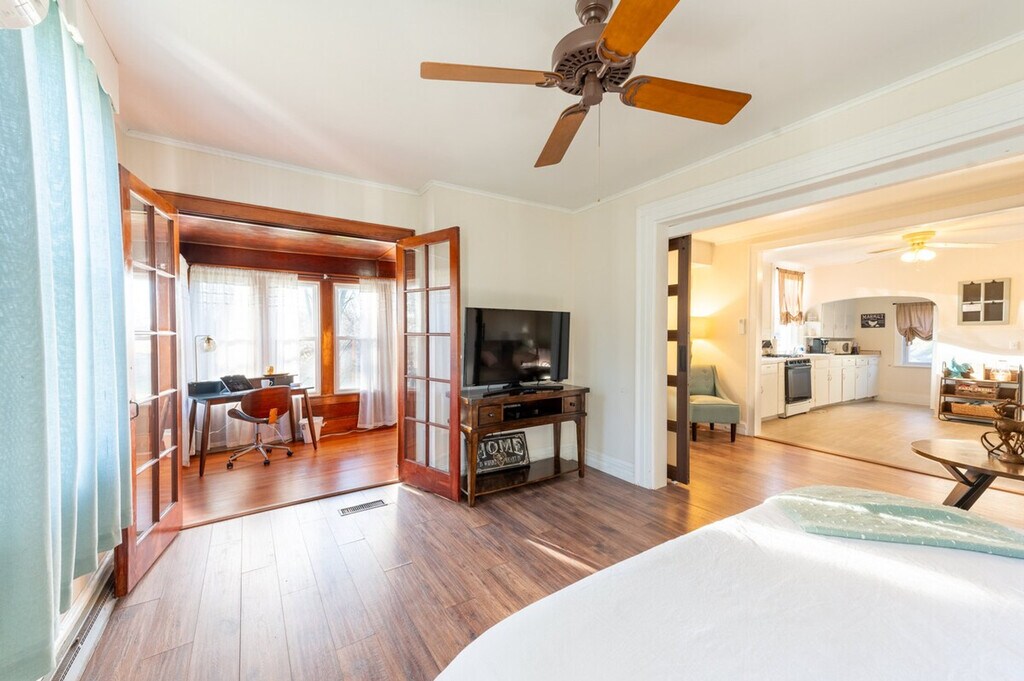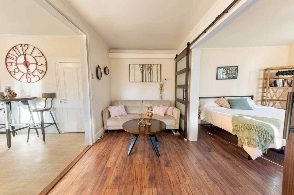 Feel at home in this historic upstate New York family home, lovingly restored by 4th generation owners. Once a 1790 Stagecoach Stop, this ground floor 1-bedroom home is now the perfect stay for guests visiting Buttermilk Falls Resort & Spa, attending a wedding in the Hudson Valley, or exploring local agritourism. Enjoy the large kitchen and sitting area, 180-degree sunroom, and newly renovated bathroom. This unit features a living room with a futon and a gorgeous sunroom/workstation with 180-degree views of the property. An air mattress is available for guest use. The TV is equipped with Roku Guest Mode, meaning you can sign in to all of your own streaming services at check-in, and you'll be automatically logged out of all your accounts on the day of check-out. One dog per stay is allowed for a nightly fee. All dogs must be house-trained with no history of indoor accidents and well-behaved. The cleaning fees can be charged as high as $250 for pet-related stains. If your dog is going to bark and howl when you leave it at the house, do not bring it. Please pick up after your dog. No pets other than dogs (cats, birds, rodents, etc.). Situated on 5 wooded acres, this home is located directly across the street from Buttermilk Falls Resort & Spa, Henry's at the Farm Restaurant, and the beautiful Hudson River. The front of the property is less than 20 feet from the entrance to Buttermilk Falls. It's also less than a 10-minute drive to Walkway Over The Hudson, Buttermilk Falls Spa & Resort, Locust Grove Brewery & Pick-Your-Own Farm, Downtown Poughkeepsie, Ship Lantern Inn, more than a half-dozen wineries and distilleries, and lots of great eateries. It's less than an hour's drive from West Point, Historic Beacon Main Street, Mohonk Mountain House, Wildflower Farms, Roosevelt Mansion, Hyde Park, Vanderbilt Mansion, Minnewaska State Park, Culinary Institute of America, Vassar College, and Marist College. Located 80 miles north of New York City and 80 miles south of Albany, NY. Guests have access to the entire side of the duplex, as well as the grounds. You'll access the home using a coded deadbolt and a 4-digit code supplied the morning of check-in. [SI]