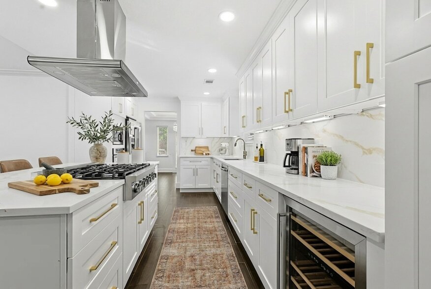 Welcome to this beautifully remodeled 4-bedroom, 2.5-bath, 2 car garage home in the desirable Candlelight subdivision. Step in a double door grand entry to a bright living room w/ high ceilings, a sleek modern fireplace & lots of windows for natural light! The stunning chef s kitchen w/ new cabinetry, stainless steel appliances, quartz countertops, & a center island w/ a gas cooktop & wine fridge. The dining area offers abundant natural light and a stylish chandelier. The luxurious primary suite includes a spacious walk-in closet and a spa-like bath with an oversized shower, separate soaking tub, double vanity, and upscale fixtures. Generously sized secondary bedrooms offer large closets, and the updated secondary bath features a new vanity, tile, & elegant finishes. wood-look tile flooring throughout. Fresh paint inside and out. Large yard! Located near major freeways, shops, restaurants, & TC Jester Park trails, this home offers convenience and comfort in one perfect package.