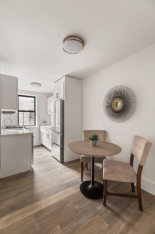 Property Id: 2431317 Spaciously 1 bedroom/1 bath home featuring the highest upgrades in all aspects. From the moment you enter, you will be greeted by generously proportioned living and dining space that set the stage in this turn key home. The residence upgrades include Terra Legno Cannon gray engineered wood flooring, flush mount Maxim Linear LED overhead lighting fixtures, interior two panel doors by Jeld-Wen with hardware by Yale and 8" base moldings. An inviting entry foyer leads you to a brand new eat-in kitchen with custom cabinetry in white, Calacatta Valentin Quartz countertops in warm white plus undermount sink by Elkay and glazed ceramic backsplash in bright white tile. In addition, the stainless steel appliance package is designed by Haier and GE and includes a dishwasher and microwave. Rounding out the picture is your king size bedroom with great closets, south and east exposures, skim-coated walls, updated electric and restored original Deco details.