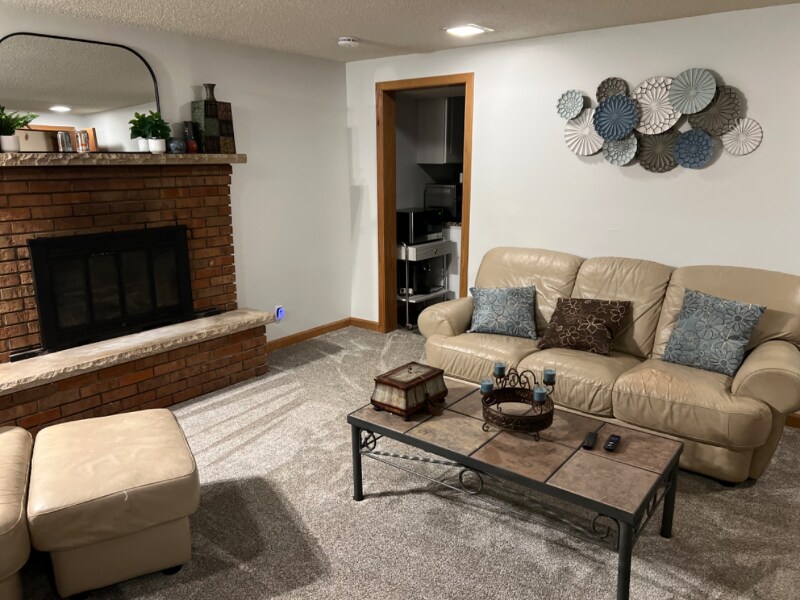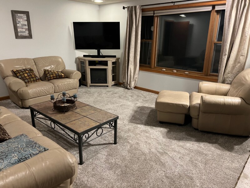 Property Id: 2192594 Enjoy peaceful lake living in this spacious, furnished one-bedroom apartment located in the lower level of a beautiful lake home. The apartment features a separate, private entrance for your comfort and convenience. The inviting family room features both a wood-burning and an electric fireplace, plus a 55” Roku TV for cozy nights in. The bedroom offers a king-sized bed, electric fireplace, 45” Roku TV, and a large window with stunning lake views. A convenient 3/4 bathroom and a well-appointed kitchenette with granite countertops, fridge/freezer, 12-in-1 countertop oven, portable cooktop, microwave, pantry cabinet, and a fold-top table with up to six chairs make this space both stylish and functional. A small extra freezer is also available. This apartment combines comfort, charm, and modern amenities—all with breathtaking views of the lake right outside your window.