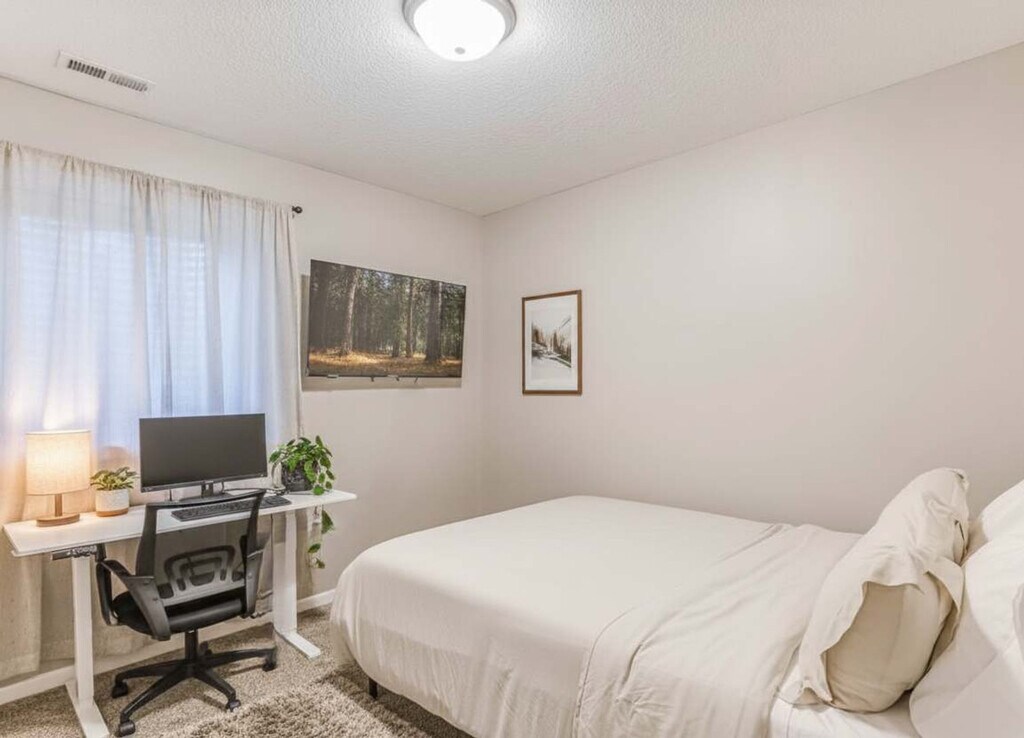 Recently renovated and thoughtfully furnished, this 3-bedroom, 3-bathroom unit at 2424 Lyndale Ave S offers comfort and convenience in the heart of Uptown Minneapolis. Feel at home in each bedroom featuring a queen bed, TV, and full work set-up perfect for working professionals. Enjoy on-site laundry, modern finishes, and easy access to dining, lakes, and downtown. Designed with you in mind, this apartment offers modern finishes and a full work set-up in each bedroom, making it ideal for working professionals. The on-site laundry adds to the convenience, ensuring you feel at home during your stay. Located in a walkable neighborhood with vibrant cafes, shops, and transit options just steps away, this apartment offers easy access to dining, lakes, and downtown Minneapolis. Ideal for extended stays or relocations, you'll be close to all the best that Uptown has to offer. The names of all guests and pets that are staying for 5 or more consecutive nights must be disclosed to the host. Registration Number: STR421919
