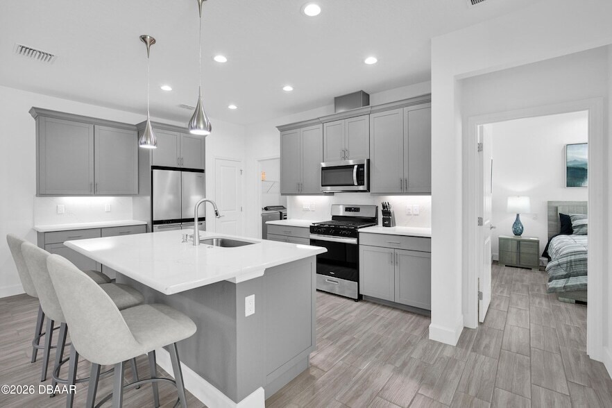 Avail 6/15/25 - 1/31/27: All-inclusive lease includes Golf Cart,1000mbps High Speed Internet, monthly Housekeeper, HOA, landscaping & pest control. Got Flip Flops? This FURNISHED Camellia Cottage with NEW high-end furnishings and tasteful Contemporary decor is a stone's throw away from Salt Shaker Square. Sleek and serene finishes with modern fixtures create an elegant and tasteful palate for your new home. Enjoy the screened lanai and convenience of keyless entry. This resort-style 55+ active community has daily entertainment at the Paradise Pool and your ''License to Chill'' HOA passport includes use of all amenities including the Fins Up Fitness Center, Mango Theatre and PRIVATE Beach Club! Upgrades include: Quartz countertops, Cushion close drawers/doors with pullouts, Under cabinet lighting, Fans and Light fixtures throughout, Gas range and tankless water heater, Ceramic plank style flooring, Showers Tiled to ceiling in both bathrooms, Painted garage floor with utility sink & more