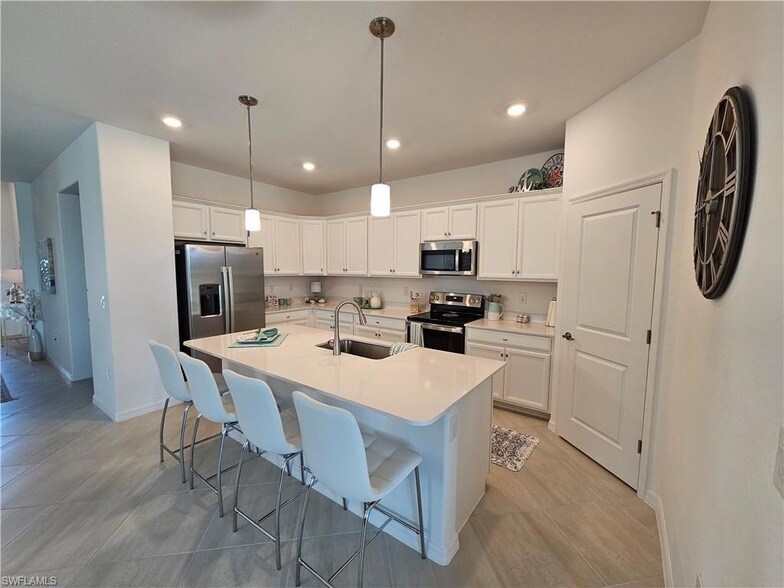 House is AVAILABLE LONG TERM!!! Can negotiate furnished or unfurnished!! Welcome to Orange Blossom Ranch, a vibrant, active community where luxury and convenience meet! Inside the gates, you'll enjoy an array of fantastic amenities, including a sparkling community pool, a fully equipped fitness center, playground, and sports courts for basketball, tennis, and volleyball. This stunning Trevi model is everything you've been looking for! With 4 spacious bedrooms and 3 luxurious full baths (two of which are en-suite), there's plenty of room for the whole family. The open floor plan creates an inviting atmosphere, perfect for making memories together. Throughout the entire 2,000+ square foot home, you'll find elegant tile flooring set on the diagonal no carpeting here! But the real showstopper? Your private pool and spa with breathtaking westerly lake views, giving you the perfect spot to relax and watch the spectacular sunsets Naples is known for. Don't wait this beautiful home won't last long!