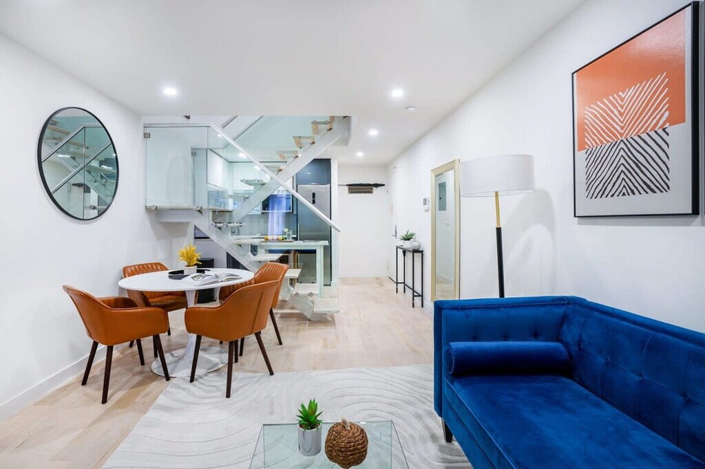 Experience your perfect NYC stay in this newly renovated 3-bedroom duplex on East 75th Street, just off 2nd and 3rd Ave. Designed for comfort and style, this spacious apartment features stylish furniture. Enjoy the convenience of an in-unit washer and dryer, dishwasher, and free high-speed Wi-Fi. Located in an elevator building, this home offers the ideal blend of luxury and practicality in the heart of the Upper East Side. Just bring your suitcase and feel at home! This renovated, spacious three-bedroom duplex is a rare find in the city, filled with natural sunlight. Located in the prime Upper East Side, it is safe, charming, and just a short walk from Central Park. The duplex has renovated full bathrooms and a fully equipped kitchen with dinnerware, utensils, and cookware. The stove, oven, and a microwave are available for cooking. There is also a coffee maker and electric kettle for tea. The building is newly renovated with an elevator, so you won't need to carry your luggage up or down multiple flights of stairs. The 4, 5, 6, Q, and W trains service the local area, and there is also an excellent NYC bus system for transportation. A queen-size air mattress is available if needed. The Upper East Side is one of the most affluent neighborhoods in New York City, known for its luxury high-rise buildings, exclusive shops, and prestigious cultural institutions. The location of this apartment on 75th Street and 2nd-3rd Avenue puts it in the heart of this neighborhood. The area is home to many famous museums, such as the Metropolitan Museum of Art and the Guggenheim, as well as other cultural institutions like the Whitney Museum of American Art. The neighborhood is also home to many high-end shops and designer boutiques, such as Louis Vuitton, Gucci, and Chanel. The area also boasts many excellent restaurants, cafes, and bars, catering to a variety of tastes and budgets. Some of the most popular include Cafe Boulud, Sushi Nakazawa, and the Carlyle Hotel's Bemelmans Bar. Smoking on the property is prohibited and will be subject to a fine up to $1,200. Pets are allowed only with prior approval by building management and an extra fee is incurred for approved pets. Be considerate of your neighbors and refrain from hosting parties. Make sure to turn off any electronic devices, lights, and AC when leaving the apartment. There is a $50 replacement fee for any lost keys.