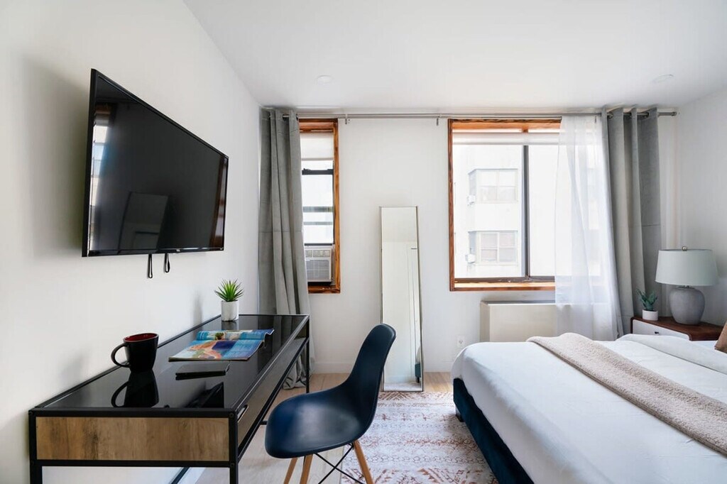 Step into this renovated and furnished 1-bedroom apartment with a balcony located in the heart of the Upper East Side on 75th Street and 2nd-3rd Avenue. With easy access via an elevator and featuring stylish furniture complete with a washer and dryer in-unit, this apartment will make you feel at home. The apartment also includes free high-speed wireless internet. This apartment features stylish furniture throughout, including a comfortable couch, a large flat-screen TV, a dining table, and a queen-sized bed. The bedroom also has a large closet for storage. The kitchen is fully equipped, including a refrigerator and stove. The bathroom boasts a modern and stylish design. One of the best features of this apartment is the in-unit washer and dryer, which is a rare find in New York City, making it easy to do laundry and keep your clothes clean and fresh. The apartment also includes free high-speed wireless internet, allowing you to stay connected and entertained during your stay. The Upper East Side is one of the most affluent neighborhoods in New York City, known for its luxury high-rise buildings, exclusive shops, and prestigious cultural institutions. The location of this apartment on 75th Street and 2nd-3rd Avenue puts it in the heart of this neighborhood. The area is home to many famous museums, such as the Metropolitan Museum of Art and the Guggenheim, as well as other cultural institutions like the Whitney Museum of American Art. The neighborhood also hosts many high-end shops and designer boutiques, such as Louis Vuitton, Gucci, and Chanel. The area boasts excellent restaurants, cafes, and bars, catering to a variety of tastes and budgets, including Cafe Boulud, Sushi Nakazawa, and the Carlyle Hotel's Bemelmans Bar. The location is convenient for exploring other parts of the city, as it is well-connected by public transportation. The subway stations at 72nd Street and 86th Street provide easy access to the 4, 5, 6, and Q trains, which can take you to other popular destinations like Central Park, Times Square, and the financial district. Smoking on the property is prohibited and will be subject to a fine of up to $1,200. Pets are allowed only with prior approval by building management, and an extra fee is incurred for approved pets. Be considerate of your neighbors and refrain from hosting parties. Ensure to turn off any electronic devices, lights, and AC when leaving the apartment. There is a $50 replacement fee for any lost keys.