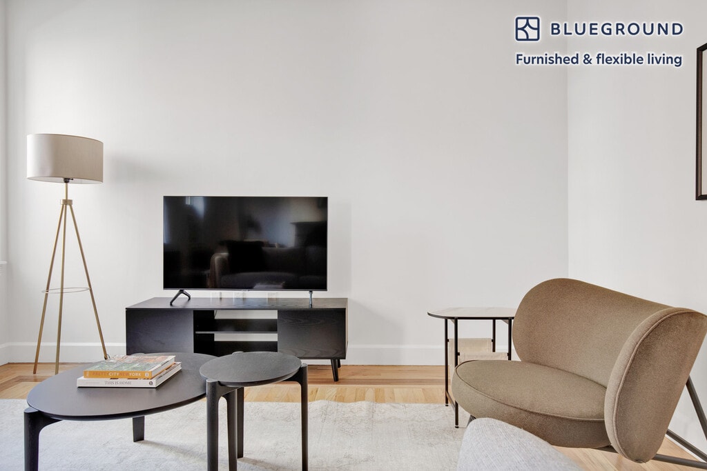 Discover the best of New York, with this two bedroom apartment in Yorkville. It’ll be easy to simply show up and start living in this beautifully furnished apartment with its fully equipped kitchen, cozy living room, and our dedicated, on-the-ground support. (ID #NYC716) The advertised rate of $5,140/month is the lowest available price, based on a 1 month(s) and 17 day(s) stay with a move-in date of December 1, 2025. If you’re looking for a 1-year stay, the rate is $7,340/month. Rates vary depending on the duration of stay, season, and other parameters. For exact pricing and additional pricing components, please visit our website and enter your desired move-in and move-out dates. The rate is applicable when billed upfront; it can be higher if billed in multiple payments. Brokers are welcome to reach out. Were you looking for an unfurnished lease? Try Blueground instead and upgrade from unfurnished to furnished living: - Furnished at rates comparable to unfurnished - No setup or furniture costs - save thousands - Move-in ready - save time, just bring your suitcase Designed with you in mind Gorgeous furniture, fully equipped kitchen, smart TV, and a premium wireless speaker are just a few of the amenities you’ll find inside this two bedroom apartment. Ideally located in New York, you’ll find a lot to love outside as well. When you’re ready to relax, you’ll be happy to discover every Blueground bedroom comes with superior quality mattresses, luxury linens, and cozy towels. We handle everything so you can simply show up and start living. This apartment also offers in-floor laundry. Sleeping arrangements Queen Bed, 63in/160cm Queen Bed, 63in/160cm Amenities Building amenities unique to this two bedroom apartment include an on-site: - Doorman - Dryer of floor - Elevator - Washing machine on floor - Pets allowed Arrival and ongoing support The entire apartment is yours to enjoy! Throughout your stay, you’ll have access to our Client Experience team through the Blueground App. You can schedule additional cleanings, submit maintenance requests, and view our neighborhood recommendations with just a few taps. We’ll share all details upon confirmation of your stay. Other things to note Building amenities may have an extra cost. This Blueground apartment has flexible lease options, allowing you to book it for one month, a year, or more. Pets are welcome, though weight limits and breed restrictions apply and may incur fees. Brokes CYOF. We take great pride in ensuring every photo displayed is shot in our own units with our actual furnishings. That said, we regularly refresh our decor and furniture arrangement, which may differ from what’s pictured.