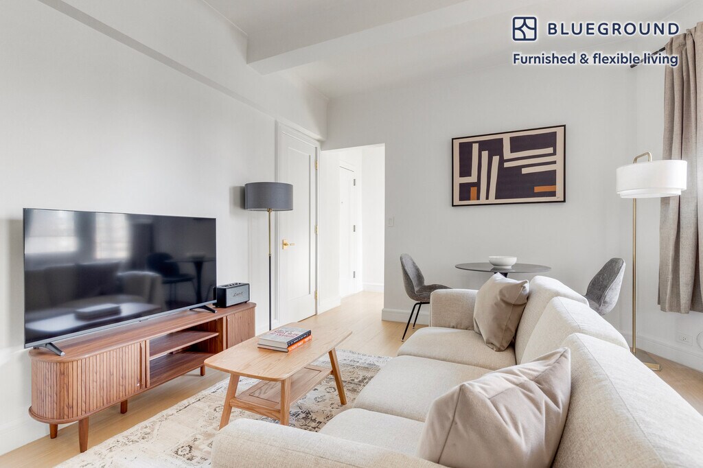 Discover the best of New York, with this one bedroom apartment in Lincoln Square. It’ll be easy to simply show up and start living in this furnished apartment with its fully equipped kitchen, living room, and our dedicated, on-the-ground support. (ID #NYC2066) The advertised rate of $5,780/month is the lowest available price, based on a 11 month(s) and 7 day(s) stay with a move-in date of October 11, 2025. Rates vary depending on the duration of stay, season, and other parameters. For exact pricing and additional pricing components, please visit our website and enter your desired move-in and move-out dates. The rate is applicable when billed upfront; it can be higher if billed in multiple payments. Brokers are welcome to reach out. Were you looking for an unfurnished lease? Try Blueground instead and upgrade from unfurnished to furnished living: - Furnished at rates comparable to unfurnished - No setup or furniture costs - save thousands - Move-in ready - save time, just bring your suitcase Designed with you in mind As with any Blueground apartment, you’ll find a thoughtfully designed space complete with beautiful furniture and a fully equipped kitchen in this one bedroom property. And, thanks to our superior quality mattresses, luxury linens, and towels, you can relax knowing you’ll always feel comfortably at home. When you’re ready for some fun, you can take in the New York vibes or bring the entertainment to you with the premium wireless speaker or smart TV. Sleeping arrangements Queen Bed, 63in/160cm Amenities Building amenities unique to this one bedroom apartment include an on-site: - Dryer in building - Elevator - Washing machine in building Arrival and ongoing support The entire apartment is yours to enjoy! Throughout your stay, you’ll have access to our Client Experience team through the Blueground App. You can schedule additional cleanings, submit maintenance requests, and view our neighborhood recommendations with just a few taps. We’ll share all details upon confirmation of your stay. Other things to note This Blueground apartment has flexible lease options, allowing you to book it for one month, a year, or more. Brokes CYOF. We take great pride in ensuring every photo displayed is shot in our own units with our actual furnishings. That said, we regularly refresh our decor and furniture arrangement, which may differ from what’s pictured.