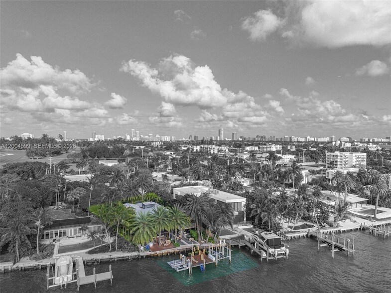 A rare waterfront home with a design you will not find again. Located on a quiet cul-de-sac inside the gated community of Normandy Shores, Set on a 9,000 SF lot with 80 FT of direct bay frontage, this property offers privacy, space, and open water views, access to golf, tennis, basketball courts, and parks. Set on the island s Terrace and shared with only a few homes, it captures wide open bay views and stunning sunsets.Built in 2015, the home offers approx. 3,442 SF with 4 bedrooms and 4 bathrooms. The layout flows through open living and dining areas into a modern kitchen designed for both function and entertaining. From the moment you arrive, the home creates a calm feel. A bamboo garden welcomes you, leading to a striking 30 ft interior waterfall that sets the tone throughout. The outdoor space is built to enjoy. Lush landscaping surrounds a pool, outdoor kitchen, and multiple terraces. Relax in the outdoor soaking tub, host gatherings under the two story tiki hut, or enjoy quiet evenings by the water. The private dock allows you to take in the bay at sunset.The property also includes boat and jet ski lifts, a davit, and plans for a future two car garage. A true opportunity for someone looking for a different kind of waterfront living experience.