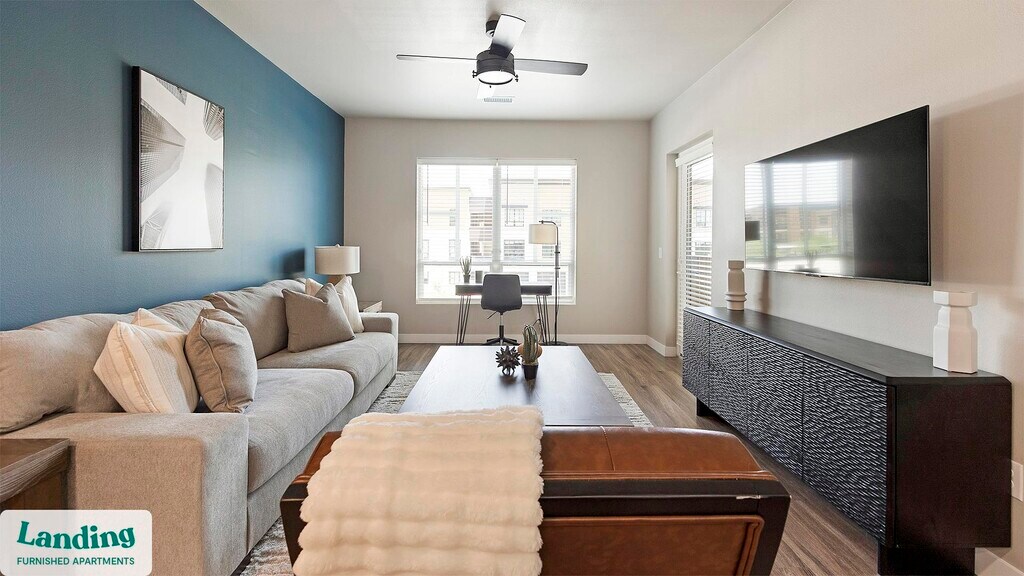 Landing offers flexible lease terms from weeks to months. Please always visit our website or contact us for the latest pricing & availability. Stay longer, save more: 6-Month Minimum base rent: starts at $2168/mo 12-Month Minimum base rent: starts at $2082/mo Landing offers flexible leases across a network of over 35,000 fully-furnished apartments throughout 375+ cities so you can rent on your terms, practically anywhere, and avoid the hassle of paying deposits or application fees. Visit to learn about all the benefits of a Landing membership, see our competitive up-to-date pricing, explore available apartments, take virtual tours, and make reservations online without jumping through traditional rental hoops. Landing's apartments at Solace at Ballpark Village are designed for comfortable, easy living, with the ability to stay as long as you like. Experience living with Landing Every apartment is outfitted with all the modern essentials including: custom-designed furnishings, a fully-equipped kitchen with deluxe stainless steel appliances, a gourmet coffee maker, premium linens, Smart TVs, and incredibly fast, reliable internet for working from home. When you live with Landing, you'll enjoy a hassle-free experience with the added benefit of 24/7 access to our dedicated member experience team. Some of the nitty-gritty: a background check and proof of income are required; we're completely smoke-free; bundled utility packages and pricing vary based on length of stay; pet-friendly options available; listed price reflects a 12-month minimum stay.