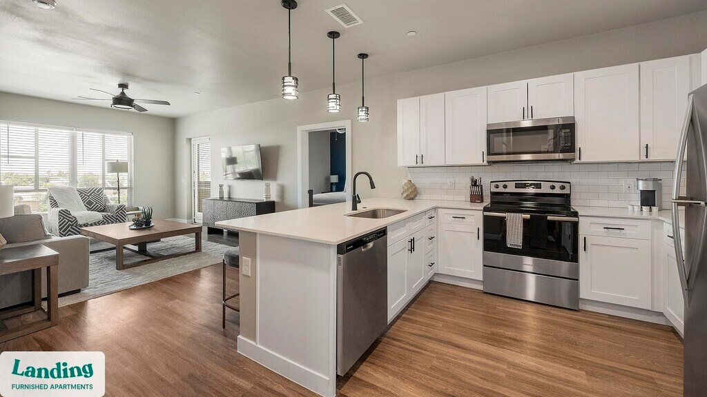 Landing offers flexible lease terms from weeks to months. Please always visit our website or contact us for the latest pricing & availability. Stay longer, save more: 6-Month Minimum base rent: starts at $2295/mo 12-Month Minimum base rent: starts at $2094/mo Landing offers flexible leases across a network of over 35,000 fully-furnished apartments throughout 375+ cities so you can rent on your terms, practically anywhere, and avoid the hassle of paying deposits or application fees. Visit to learn about all the benefits of a Landing membership, see our competitive up-to-date pricing, explore available apartments, take virtual tours, and make reservations online without jumping through traditional rental hoops. Landing's apartments at Solace at Ballpark Village are designed for comfortable, easy living, with the ability to stay as long as you like. Experience living with Landing Every apartment is outfitted with all the modern essentials including: custom-designed furnishings, a fully-equipped kitchen with deluxe stainless steel appliances, a gourmet coffee maker, premium linens, Smart TVs, and incredibly fast, reliable internet for working from home. When you live with Landing, you'll enjoy a hassle-free experience with the added benefit of 24/7 access to our dedicated member experience team. Some of the nitty-gritty: a background check and proof of income are required; we're completely smoke-free; bundled utility packages and pricing vary based on length of stay; pet-friendly options available; listed price reflects a 12-month minimum stay.