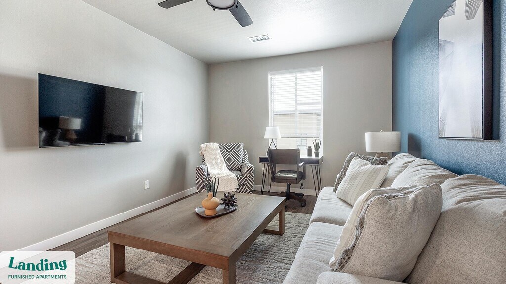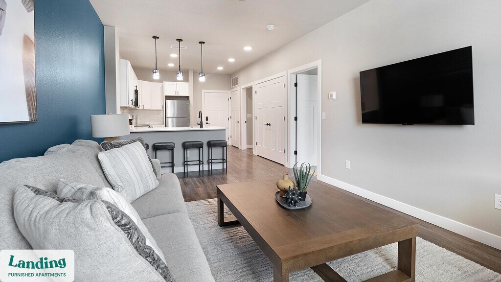 Landing offers flexible lease terms from weeks to months. Please always visit our website or contact us for the latest pricing & availability. Stay longer, save more: 6-Month Minimum base rent: starts at $1817/mo 12-Month Minimum base rent: starts at $1668/mo Landing offers flexible leases across a network of over 35,000 fully-furnished apartments throughout 375+ cities so you can rent on your terms, practically anywhere, and avoid the hassle of paying deposits or application fees. Visit to learn about all the benefits of a Landing membership, see our competitive up-to-date pricing, explore available apartments, take virtual tours, and make reservations online without jumping through traditional rental hoops. Landing's apartments at Solace at Ballpark Village are designed for comfortable, easy living, with the ability to stay as long as you like. Experience living with Landing Every apartment is outfitted with all the modern essentials including: custom-designed furnishings, a fully-equipped kitchen with deluxe stainless steel appliances, a gourmet coffee maker, premium linens, Smart TVs, and incredibly fast, reliable internet for working from home. When you live with Landing, you'll enjoy a hassle-free experience with the added benefit of 24/7 access to our dedicated member experience team. Some of the nitty-gritty: a background check and proof of income are required; we're completely smoke-free; bundled utility packages and pricing vary based on length of stay; pet-friendly options available; listed price reflects a 12-month minimum stay.