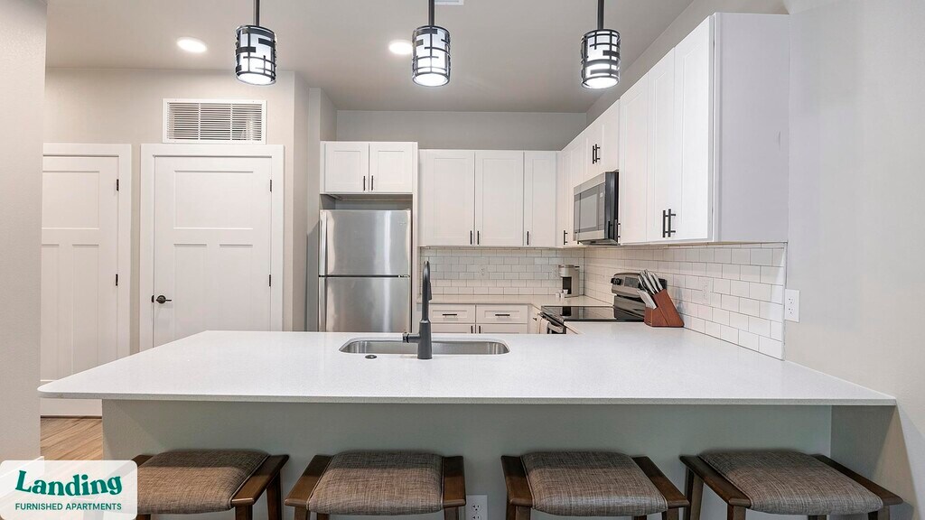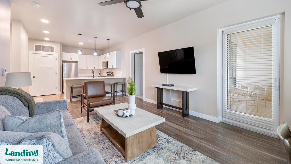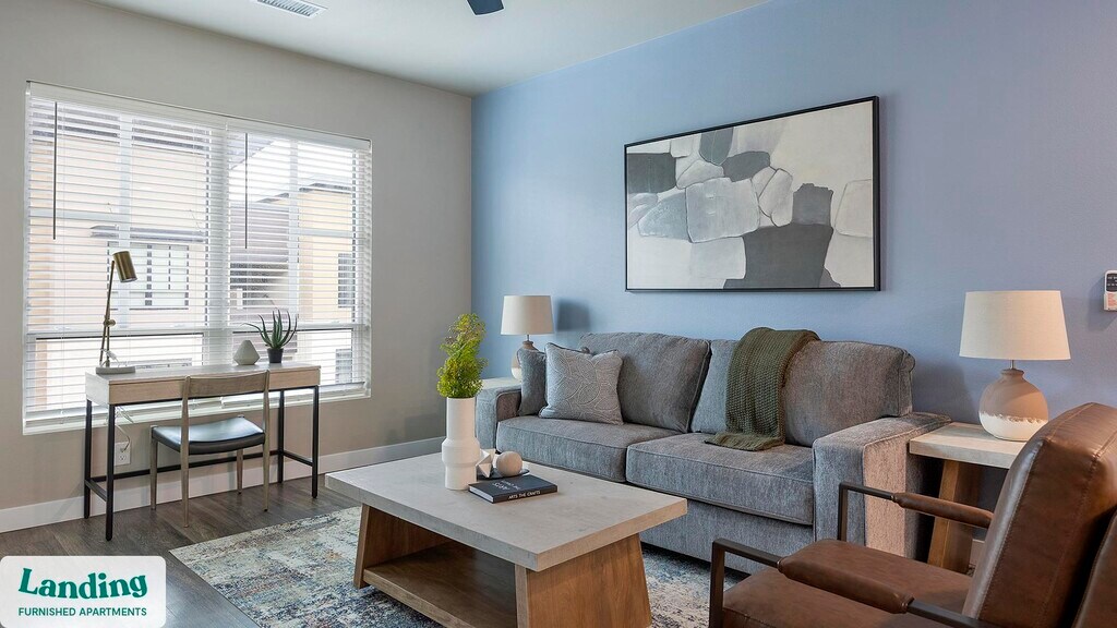 Landing offers flexible lease terms from weeks to months. Please always visit our website or contact us for the latest pricing & availability. Stay longer, save more: 6-Month Minimum base rent: starts at $2383/mo 12-Month Minimum base rent: starts at $2173/mo Landing offers flexible leases across a network of over 35,000 fully-furnished apartments throughout 375+ cities so you can rent on your terms, practically anywhere, and avoid the hassle of paying deposits or application fees. Visit to learn about all the benefits of a Landing membership, see our competitive up-to-date pricing, explore available apartments, take virtual tours, and make reservations online without jumping through traditional rental hoops. Landing's apartments at Solace at Ballpark Village are designed for comfortable, easy living, with the ability to stay as long as you like. Experience living with Landing Every apartment is outfitted with all the modern essentials including: custom-designed furnishings, a fully-equipped kitchen with deluxe stainless steel appliances, a gourmet coffee maker, premium linens, Smart TVs, and incredibly fast, reliable internet for working from home. When you live with Landing, you'll enjoy a hassle-free experience with the added benefit of 24/7 access to our dedicated member experience team. Some of the nitty-gritty: a background check and proof of income are required; we're completely smoke-free; bundled utility packages and pricing vary based on length of stay; pet-friendly options available; listed price reflects a 12-month minimum stay.