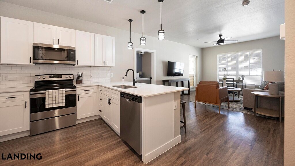 Landing is a top-rated, fully furnished apartment network with thousands of homes across 250+ U.S. cities. With premium amenities, a mobile app to manage your stay, and 24/7 support. Our apartments have everything you need for monthly and longer stays. 6-Month+ Stay base rent: starts at $2305/mo 12-Month+ Stay base rent: starts at $2131/mo Landing's apartments at Solace at Ballpark Village are designed for comfortable, easy living, with the ability to stay as long as you like. All Landing apartments include: - Fast Wi-Fi - Stylish furnishings - Fully-stocked bathroom - Smart TVs - Comfortable bed - Professionally cleaned - Guest support Stay longer for cheaper! The longer you stay, the bigger your discount. Price advertised is for a 12-month stay, including all utilities and fees, and may vary based on availability. We manage multiple units at this property. While all feature a similar style and furnishings, the layout and specific design elements may vary slightly from the photos provided. Some of the nitty-gritty: a background check and proof of income are required; we're completely smoke-free; pet-friendly options are available; parking is subject to availability.