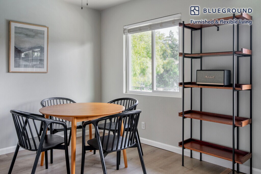Feel at home wherever you choose to live with Blueground. You’ll love this comfortable Old Mountain View furnished one bedroom apartment with its modern decor, fully equipped kitchen, and exquisite living room. Ideally located, you’re close to all the best that Mountain View has to offer! (ID #SFO1723) The advertised rate of $2,530/month is the lowest available price, based on a 1 month(s) and 29 day(s) stay with a move-in date of November 29, 2025. If you’re looking for a 1-year stay, the rate is $3,540/month. Rates vary depending on the duration of stay, season, and other parameters. For exact pricing and additional pricing components, please visit our website and enter your desired move-in and move-out dates. The rate is applicable when billed upfront; it can be higher if billed in multiple payments. Brokers are welcome to reach out. Were you looking for an unfurnished lease? Try Blueground instead and upgrade from unfurnished to furnished living: - Furnished at rates comparable to unfurnished - No setup or furniture costs - save thousands - Move-in ready - save time, just bring your suitcase Designed with you in mind Gorgeous furniture, fully equipped kitchen, smart TV, and a premium wireless speaker are just a few of the amenities you’ll find inside this one bedroom apartment. Ideally located in Mountain View, you’ll find a lot to love outside as well. When you’re ready to relax, you’ll be happy to discover every Blueground bedroom comes with superior quality mattresses, luxury linens, and cozy towels. We handle everything so you can simply show up and start living. Sleeping arrangements King Bed, 70.8in/180cm Amenities Building amenities unique to this one bedroom apartment include an on-site: - Dryer in building - Swimming pool - Washing machine in building - Parking - Pets allowed Arrival and ongoing support The entire apartment is yours to enjoy! Throughout your stay, you’ll have access to our Client Experience team through the Blueground App. You can schedule additional cleanings, submit maintenance requests, and view our neighborhood recommendations with just a few taps. We’ll share all details upon confirmation of your stay. Other things to note Building amenities may have an extra cost. This Blueground apartment has flexible lease options, allowing you to book it for one month, a year, or more. Pets are welcome, though weight limits and breed restrictions apply and may incur fees. Parking is offered based on availability and is subject to a fee. Please keep in mind that this is a walk up building. We take great pride in ensuring every photo displayed is shot in our own units with our actual furnishings. That said, we regularly refresh our decor and furniture arrangement, which may differ from what’s pictured. [SI]