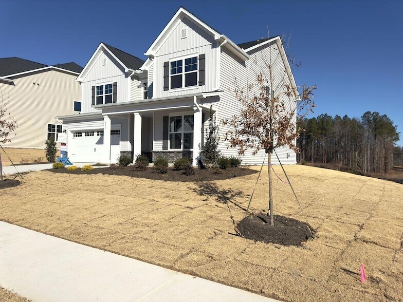LIKE NEW Spacious Bright and Sunny Single Family Home with privacy and big backyard to enjoy outdoors with a view! This lovely home features 1st floor guest bedroom with full bath, in addition to the great room, dining room, breakfast area and the kitchen. This gourmet Kitchen boasts of gas cooktop, vent hood, microwave, convection oven, quartz countertops, walk in pantry, tile backsplash, soft close drawers and large island! Perfect for entertaining as Kitchen overlooks living and dining area. Beautiful upgrades some to mention wide LVP floors, crown molding all 1st floor, LED lighting and much more. Tons of windows to bring in natural light. Primary bedroom with tray ceiling with dual walk-in closets and luxurious bath, 2nd bedroom w/its own bathroom great for a teenager or a guest, and 2 additional bedrooms w/shared bath, a LOFT and a laundry room with a sink for hand washing is on 2nd floor. Screened patio offers privacy with view of the trees making it ideal for relaxing! Neighborhood amenities include a swimming pool, open-air cabana, open play lawns, dog park and community trail system! Minutes to I-40, Hwy 70, downtown Raleigh dining and entertainment and parks and recreation sites such as Historic Yates Mill County Park and White Deer Park.