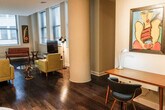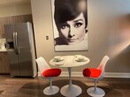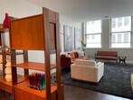 Experience Mid-Century modern living in downtown Rochester at Spectra in Sibley Square. This one-bedroom, one-bath apartment boasts a bright interior with large windows, a spacious 30' living area including an office and dining area, and a fully equipped galley kitchen. High-quality finishes, gray-washed laminate floors, ample closet space, and an in-unit washer and dryer enhance the elegance of this stylish unit. Welcome to your luxurious mid-century modern one-bedroom, one-bath corporate rental unit in historic Sibley Square in downtown Rochester. As you step into this exquisite space, the large galley kitchen's stylish sophistication greets you, setting the tone for the impeccable design and attention to detail throughout. The kitchen area boasts sleek cabinetry, modern appliances, and ample counter space, inviting you to unleash your culinary creativity in style. A small marble-topped tulip table with seating for two adds a touch of elegance and offers a cozy spot for intimate meals or morning coffee. Beyond the kitchen, the spacious living room awaits. It features tasteful furnishings and large windows that flood the space with natural light, creating an inviting ambiance for relaxation and entertainment. The modern bath is adjacent to the living room, offering a luxurious shower and elegant finishes for a spa-like experience. The bedroom provides a serene sanctuary with plush bedding and ample storage space, ensuring a restful night's sleep every night. A small office area also offers the perfect space to focus and easily tackle work tasks. Convenience is at your fingertips with a washer-dryer unit discreetly tucked away, ensuring a hassle-free and efficient laundry day. Parking is available for a monthly fee, providing added convenience for residents with vehicles. The unit is located at Sibley Square, formerly a department store converted into a multi-use building. Sibley Square is directly in the center of the City of Rochester and within walking distance to Eastman School of Music, restaurants, Eastman Theater, coffee shops, and more. It is also within minutes from the Genesee Riverway Trail, The Strong Museum, Memorial Art Gallery, Eastman Theatre, and Gibbs Street. Sibley Square exposes you to all of Rochester's art, history, culture, and natural beauty. The comfort or rights of neighbors must not be interfered with, meaning that annoying sounds, odors, and lights are not allowed, including loud music, arguments, frequent and/or late-night invitees, unruly or threatening behavior, and other disturbances in the unit or anywhere on the premises. Parties are not allowed on the premises. Quiet hours are from 8 pm to 8 am. Smoking is prohibited anywhere inside the unit or on the property. The guest must return all keys, fobs, or garage access cards upon leaving the rental. The guest is responsible for compliance with all trash recycling regulations. No parking on premises except in permitted areas. The guest must notify Management immediately upon discovering water leaks in the unit, including a toilet or faucet running or dripping, clogged drains, or cracked or leaking pipes. The guest must maintain clean and sanitary conditions of the unit. Long-term guests will supply and install all light bulbs for the unit but will leave all installed light bulbs when vacating the unit. Drinks should not be put on the surface of furniture. Coasters are provided to prevent damage. If any furniture is moved, it must be returned to its original location. Management prefers not to move the furniture. No additional people will stay in the unit than the number reserved without notification and approval. The guest must complete a Property Condition form within 48 hours of arrival. The guest must pay all fees and expenses for any repairs or services due to the guest’s fault or actions. If any damage is found in the unit, the guest will be expected to cover replacement costs. Because of our strict quality control standards, guests are not to replace items themselves. In addition to payments for damaged items, a 20% administrative fee will be charged. Any damages will be deducted from the security deposit. No pets without written permission. The minimum age to rent is 25. A small office area offers the perfect space to focus and easily tackle work tasks.