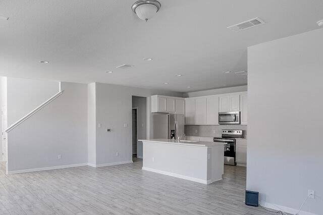 Welcome to this beautiful two-story home located in the highly desirable Sonterra neighborhood in Jarrell, Texas. From the moment you step inside, you re greeted by an impressive foyer entrance featuring soaring ceilings, an elegant staircase, and light wood-style flooring that creates a warm and inviting first impression.Designed with modern living in mind, the open-concept floor plan seamlessly connects the living, dining, and kitchen areas perfect for both everyday living and entertaining. The kitchen is a true centerpiece, showcasing stainless steel appliances, crisp white cabinetry, recessed lighting, and a spacious center island with sink that offers additional prep space and seating.Upstairs, you ll find a large gameroom that provides endless possibilities whether you envision a media room, play space, home office, or second living area. The full bathroom features a double vanity and a convenient stall shower, offering both style and functionality.Step outside to enjoy the massive fenced backyard complete with a patio area ideal for weekend barbecues, outdoor gatherings, or simply relaxing in your own private space.This Sonterra gem combines space, style, and comfort in one incredible home schedule your showing today!