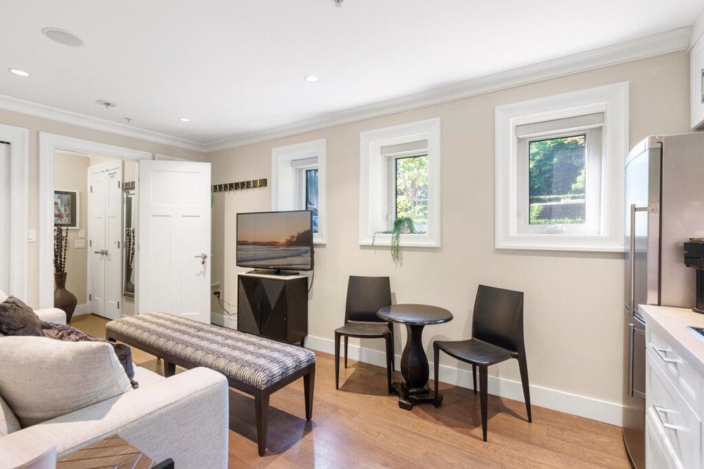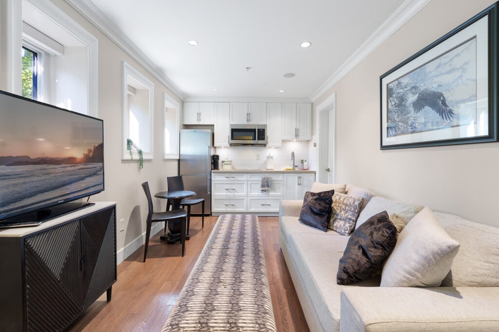 Welcome to your cozy retreat in the heart of Kitsilano! This bright and modern 1-bedroom basement suite offers the perfect blend of comfort and convenience. Featuring a stylish open-concept living space with a full kitchen, stainless steel appliances, and sleek cabinetry, this suite is ideal for singles or couples looking to enjoy one of Vancouver’s most sought-after neighborhoods. The living area provides a comfortable place to relax, while the well-sized bedroom ensures restful nights. The spa-inspired bathroom comes with a walk-in shower and modern finishes. Outside, enjoy access to a beautifully landscaped shared garden patio, perfect for morning coffee or evening relaxation. Located on a quiet, tree-lined street just off West 7th Ave, you’ll be within walking distance to trendy shops, cafes, restaurants, and Kitsilano Beach. Easy transit access makes commuting downtown a breeze. No smoking, no parties and events, and no noise after 10 PM. [SI]