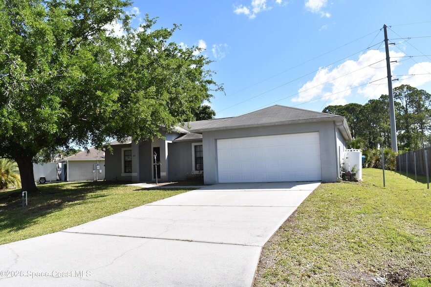 Affordable living awaits in this clean 3-bedroom, 2-bath home located in desirable NW Palm Bay! This well-maintained property features a bright, open floor plan with tile flooring throughout for easy upkeep. The spacious kitchen offers ample counter space and a convenient breakfast bar, perfect for casual dining or entertaining.Enjoy Florida living at its best with sliding glass doors leading to a screened porch that overlooks a generously sized backyard--ideal for relaxing or hosting guests. The primary suite includes a walk-in closet and an en-suite bath with a step-in shower. Additional highlights include an inside laundry room and a 2-car garage with an automatic opener for added convenience.Don't miss this opportunity--schedule your showing today!