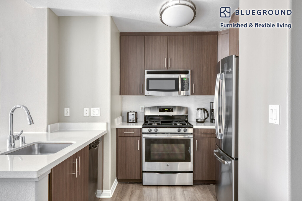 Show up and start living from day one in Pasadena with this cozy one bedroom Blueground apartment. You’ll love coming home to this thoughtfully furnished, beautifully designed, and fully equipped Playhouse Village home. (ID #LAX857) The advertised rate of $3,960/month is the lowest available price, based on a 12 month(s) stay with a move-in date of March 16, 2026. Rates vary depending on the duration of stay, season, and other parameters. For exact pricing and additional pricing components, please visit our website and enter your desired move-in and move-out dates. The rate is applicable when billed upfront; it can be higher if billed in multiple payments. Brokers are welcome to reach out. Were you looking for an unfurnished lease? Try Blueground instead and upgrade from unfurnished to furnished living: - Furnished at rates comparable to unfurnished - No setup or furniture costs - save thousands - Move-in ready - save time, just bring your suitcase Designed with you in mind As with any Blueground apartment, you’ll find a thoughtfully designed space complete with beautiful furniture and a fully equipped kitchen in this one bedroom property. And, thanks to our superior quality mattresses, luxury linens, and towels, you can relax knowing you’ll always feel comfortably at home. When you’re ready for some fun, you can take in the Pasadena vibes or bring the entertainment to you with the premium wireless speaker or smart TV. This apartment also offers in-apartment laundry. Sleeping arrangements King Bed, 70.8in/180cm Amenities Building amenities unique to this one bedroom apartment include an on-site: - BBQ Area - Dryer - Elevator - Swimming pool - Washing machine - Lounge - Parking - Pets allowed Arrival and ongoing support The entire apartment is yours to enjoy! Throughout your stay, you’ll have access to our Client Experience team through the Blueground App. You can schedule additional cleanings, submit maintenance requests, and view our neighborhood recommendations with just a few taps. We’ll share all details upon confirmation of your stay. Other things to note Building amenities may have an extra cost. This Blueground apartment has flexible lease options, allowing you to book it for one month, a year, or more. Pets are welcome, though weight limits and breed restrictions apply and may incur fees. Parking is offered based on availability and is subject to a fee. We take great pride in ensuring every photo displayed is shot in our own units with our actual furnishings. That said, we regularly refresh our decor and furniture arrangement, which may differ from what’s pictured. Also note - This apartment does not have strong cell phone reception [SI]