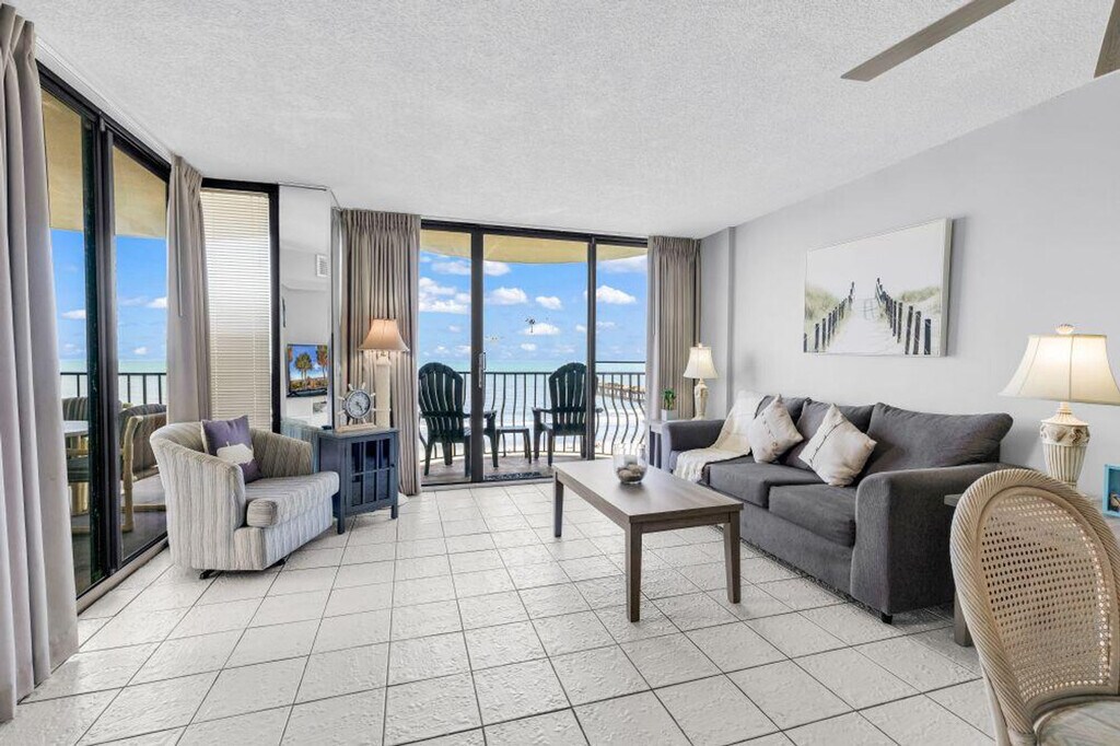 Welcome to your perfect getaway in Myrtle Beach! This beautiful condo features a spacious living room complete with a Smart TV, ideal for relaxing movie nights or catching up on your favorite shows. The open dining area offers plenty of space to enjoy meals together, and the equipped kitchen makes home-cooked meals a breeze. Step out onto your private, furnished balcony to enjoy the fresh coastal breeze and scenic views. For your convenience, the unit includes an in-suite washer and dryer, perfect for longer stays or beach days. Located in a resort with fantastic amenities, you’ll have access to sparkling swimming pools, a soothing hot tub, and a fun-filled kiddie pool, great for families! Free parking space is available for 2 cars and a parking garage is available across the street. Whether you're here for sun, sand, or just some well-earned relaxation, this condo has everything you need for a memorable Myrtle Beach stay. Local attractions include the Boardwalk, Broadway at the Beach, WonderWorks, Myrtle Beach Sky Wheel, Myrtle Waves Water Park, Family Kingdom Amusement Park, Dragon's Lair at Broadway at the Beach, Jurassic Golf, Jungle Safari, Captain Hook's Adventure courses, Nascar SpeedPark, Brookgreen Gardens, and Championship Golf. A new pier is currently under construction near the property, expected to continue through 2026, which may cause occasional noise or limited access to certain areas. The city is also working on the pipes in the ocean, which may result in loud noise most of the time. Coastline Pest Control performs mandatory preventative treatments in every unit on the 2nd Tuesday of the month. Grilling is prohibited with a penalty of $200 for violations. Bicycles, motorcycles, mopeds, and trailers are not allowed. No smoking in the unit or on the balcony, with a $250 fine plus cleaning costs for violations. No pets allowed with a $200 fine for violations. Gatherings of more than 6 people are not allowed and may result in eviction. House parties and illegal substances are strictly prohibited and grounds for immediate eviction. You must be at least 21 years old to book this property. Late check-out will incur a penalty starting from $500. Upgraded internet with speeds of 200mbs/20mbs makes it perfect for remote work from the beach.