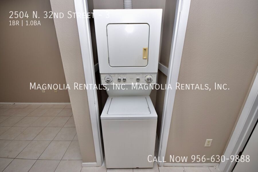 1st Month Free with 13 Month Lease Discover 2504 N. 32nd, a comfortable one-bedroom, one-bath downstairs apartment in McAllen, TX. This unit includes a refrigerator, stove/oven, and an in-home washer and dryer for added convenience. Ceiling fans help maintain airflow while 24/7 maintenance support ensures prompt assistance when needed. The community requires a 12-month lease and is designated as no smoking; tenants are responsible for all utilities. Enjoy a straightforward, well-equipped living space in a convenient location. 12 Month Lease 24/7 Maintenance Support Downstairs Unit