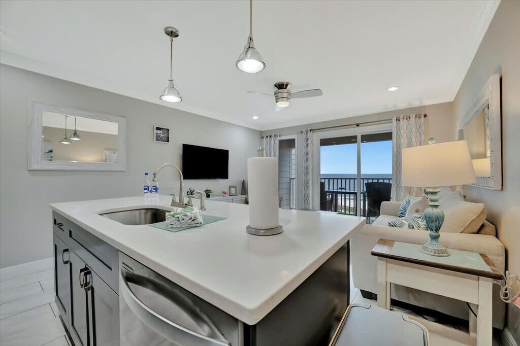 Welcome to The Pearl Suite, a vibrant, designer penthouse-style condo where you'll feel at home. This 1-bedroom, 1-bathroom waterfront retreat offers stunning Tampa Bay views and full access to resort amenities. This modern condo features a fully stocked kitchen with stainless steel appliances, a cooking island, bar seating, and a double-door refrigerator. The designer bathroom includes a tiled and stone shower. Enjoy the convenience of 2 smart TVs with streaming access, complimentary toiletries, towels, soaps, and coffee. The bright, open-concept layout is filled with natural light. Free coffee, parking, and Wi-Fi are included. Laundry is available on-site via a coin or card-operated laundry room. Located in the Rocky Point tourism spot, this condo is near hotels, condos, restaurants, and bars. Ben T Davis beach is only a 15-minute walk or a 3-minute drive away. Quiet hours are between 10 PM and 8 AM. Sailport permits Emotional Support and Service Animals with prior notice, written approval from the Manager, and supporting documentation provided to security upon arrival. A $100 pet fee applies. Pets are not allowed on beds or couches. Unauthorized pets incur a $250 penalty per pet and possible reservation cancellation without refund. Guests must clean up after pets; failure to do so results in a $50 penalty. Regular household pets are not allowed. The manager reserves the right to remove any pet for inappropriate behavior. All the amenities outside of the unit (pool, grills, gym, convenience store, laundry, etc.) and the internet/Wi-Fi are managed by the resort. The booking guest must be at least 18 years of age to check-in, and security will request an ID upon arrival. Check-in time is 4 PM EST and checkout time is 11 AM EST. If cleaners determine smoking has taken place, whether by observation or smell, a $250 penalty will be charged. If smoking is observed during the course of an active stay, the reservation may be canceled without any refund and a $250 penalty will be charged. Unless requested and approved in advance in writing, lethal weapons are not allowed on the property. A violation of this rule will result in immediate removal from the property along with no refund and a penalty of $250. [SI]