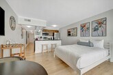 Feel at home in this 1-bedroom, 1-bathroom suite on the 2nd floor of Palm Court, a West Indies-inspired tropical retreat on Tampa Bay, accessible by two elevators. This suite offers the best bay view in the building from your private balcony. This suite features two queen beds, one in the bedroom and one in the living room, providing flexible sleeping arrangements. Enjoy panoramic bay views and mix tropical drinks at the natural wood bar, complete with a cocktail set and four carved tiki man cups. A seashell tic-tac-toe game adds a playful island touch, complemented by palm tree and tropical-inspired décor. The spacious living room exudes coastal charm, and you can cozy up for a movie night with fresh popcorn using the popcorn maker and kernels. Complimentary parking is available for your convenience. On-site coin laundry facilities are available to refresh clothes after your adventures. Instacart delivery is available directly to the unit. Located in Rocky Point, right on Tampa Bay and near Downtown Tampa, this apartment is close to hotels, small bars, restaurants, and a rooftop bar. Whiskey Joes, a popular beach bar and restaurant with live music, is a short walk away. Ben T Davis Beach is also nearby. The apartment is just 5 minutes from Tampa International Airport and a short drive to Downtown Tampa, Raymond James Stadium, Amalie Arena, and Hyde Park. A digital rental agreement must be signed and a legal ID and verification photo must be submitted prior to arrival. The booking guest must be at least 18 years of age to check-in. Anyone under 18 will be refused entry and your reservation will be canceled without a refund. Security will request an ID upon arrival. Unauthorized late checkouts or early check-ins will result in a charge of $35 for every 30 minutes (rounded up). If cleaners determine smoking has taken place, a $250 penalty will be charged. Unauthorized pets incur a $250 penalty per pet and possible reservation cancellation without refund. Guests must clean up after pets; failure to do so results in a $50 penalty. Unless requested and approved in advance in writing, lethal weapons are not allowed on the property, and a violation of this rule will result in immediate removal from the property along with no refund and a penalty of $250. [SI]