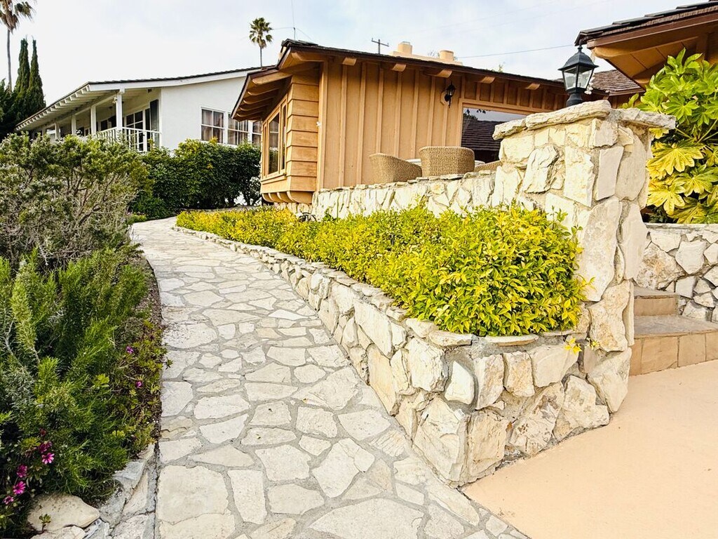 Beautiful mid century modern style expansive light home in highly desirable Lunada Bay area, located centrally between all three levels of distinguished and highly rated schools, walking distance to cliffs, and Lunada Bay Plaza. This home has 3 remodeled bathrooms and new appliances. Additional flex room can be used as a den or office with a separate entry. Another bedroom opens up to a private brick side yard. Expansive yard with a ramped stone pathway that extends to a backyard wrap around deck. Outdoor retreat space among landscaping is plentiful surrounding the home, including a backyard high hill, offering another private space with breezes and sunset views. This home is furnished as shown with flexibility to go partial furnished and possibly unfurnished. Call to inquire.