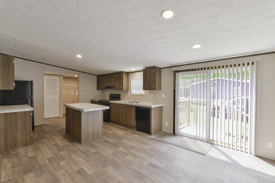 Be the first to live in this New Mobile Home in Much Sought after Huffman ISD. 3 bedroom, 2 bath sitting on a large fenced in corner lot! Main living areas feature a very open floorplan. Island kitchen has all NEW black appliances including a Refrigerator. Just bring your own Washer/Dryer. Primary bedroom with En-Suite bath and large walk in closet.Upgraded LED lighting throughout. New deck in both front and back of the home. Dont let this one slip by!