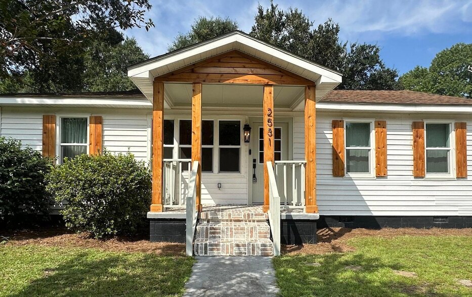 Welcome to 2531 Wecco Street -- a beautifully renovated 3-bedroom, 2-bath Lowcountry gem tucked away in the quiet Green Grove subdivision. Perfectly located just 15 minutes from Downtown Charleston, 10 minutes from Park Circle, and 5 minutes from Charleston International Airport, this home offers convenience without sacrificing charm. Drawing inspiration from clean, Scandinavian design while embracing the warmth of its original craftsmanship, this home features stunning oak and pine hardwood floors throughout, tongue-and-groove walls and ceilings, and timeless natural finishes in stone, marble, and masonry -- all showcasing true materials built to last.Set on a spacious lot with a large, wooded backyard shaded by live oaks, the property also includes a separate storage shed, perfect for tools or outdoor hobbies. The backyard provides plenty of space for entertaining, gardening, or simply relaxing in your private slice of nature. Move-in ready and full of character! Don't miss this rare blend of comfort, craftsmanship, and location in one of Charleston's most accessible areas.