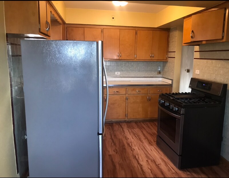 Property Id: 2205982 Beautiful 2 Large bedroom,1 bathroom, eat-in kitchen, steals steel appliances, hardwood floors. Very well maintained building conveniently located near shopping, dining and recreation, walking distance to schools, commuter friendly. Nice fenced yard. Tenant pays electric and gas. Pets are not allowed.