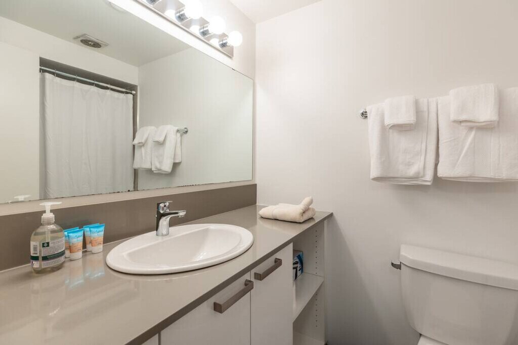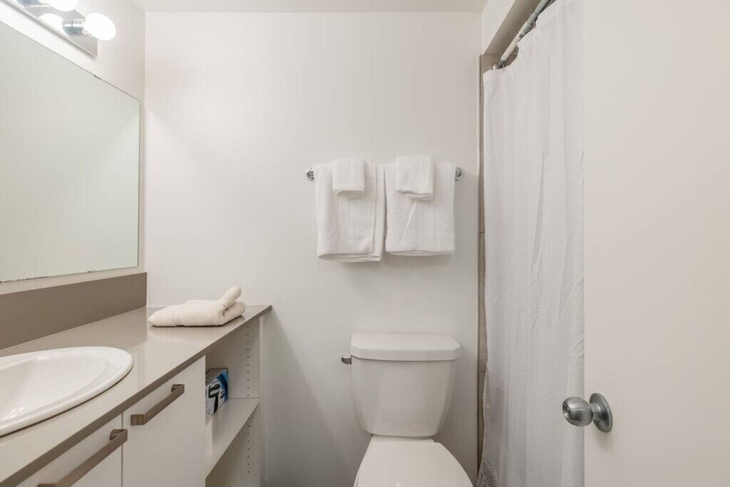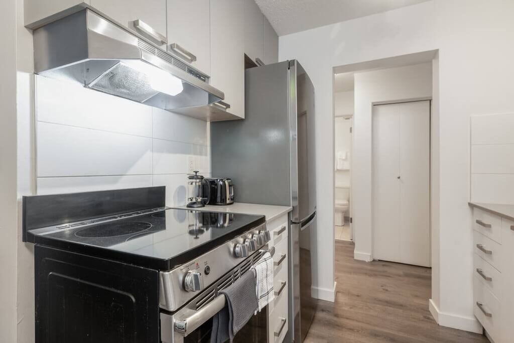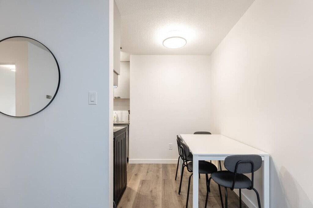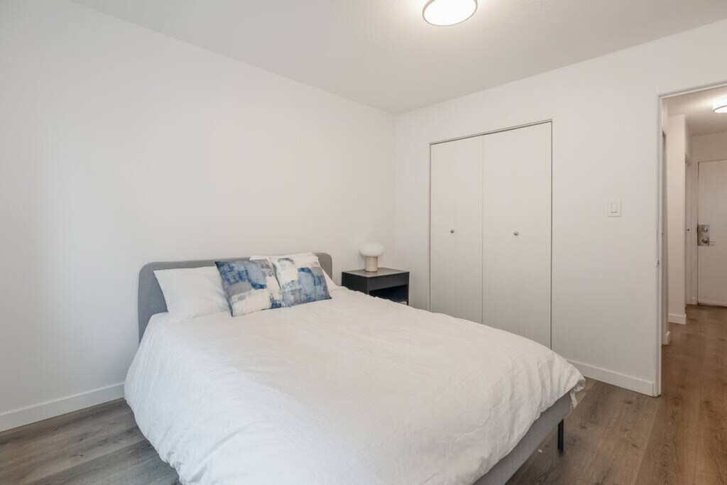 Feel at home in this newly furnished condo in peaceful Mount Pleasant, steps from vibrant Main St. This apartment offers a stylish, modern space. Enjoy a full kitchen, smart TV, private patio, and dining area. The bright, monochrome design features hardwood floors and natural light throughout. Dedicated parking is included. Walk to shops, cafes, and bars, or access excellent public transit for easy travel across Vancouver. No parties, events, or large gatherings are allowed, and smoking is prohibited. [SI]