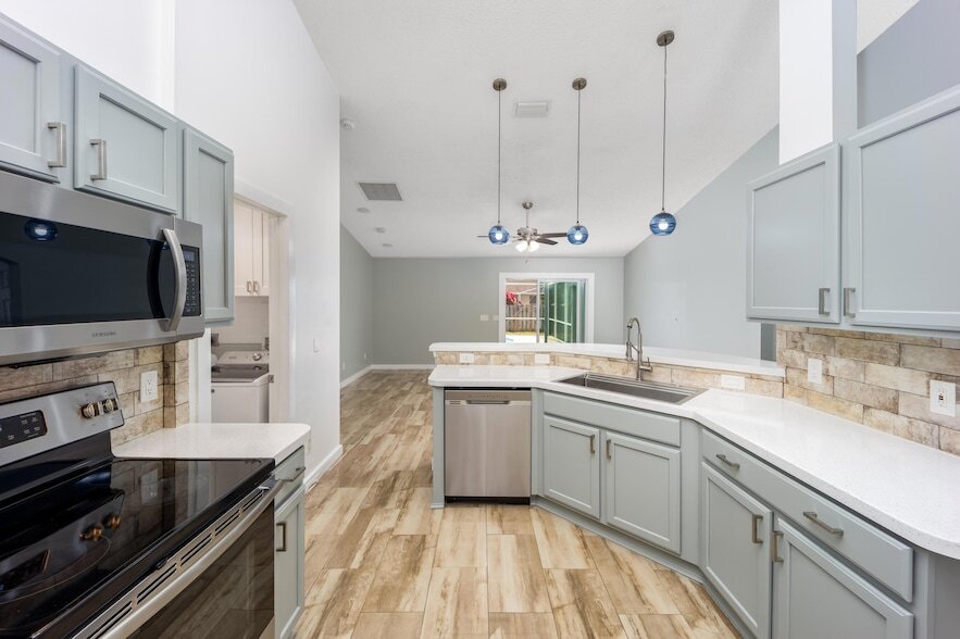 Well-maintained 3-bedroom, 2-bath pool home with a 2-car garage, ideally located close to local schools, shopping, golf courses and a short drive to the beaches. Vaulted ceilings create a bright, open living area, while the kitchen offers stainless steel appliances, wood cabinetry, and a pantry for everyday convenience. Enjoy outdoor living in the spacious, fully fenced backyard featuring a screened lanai and private in-ground pool. Additional highlights include easy access to major highways and room for recreational vehicles. A great rental opportunity offering comfort, space, and a convenient location.