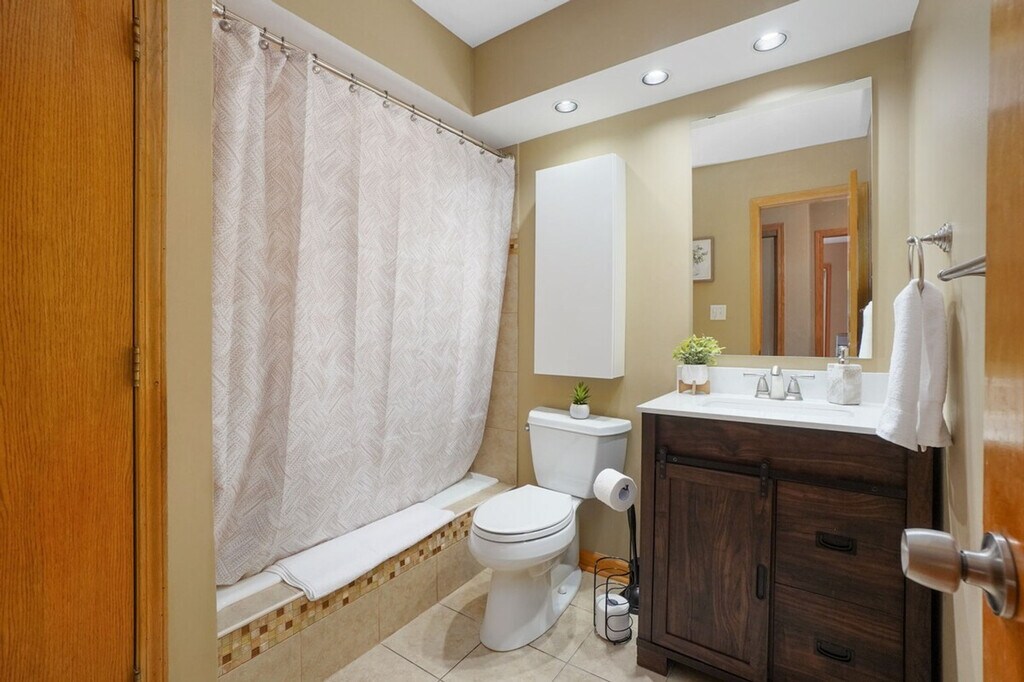 Feel at home in this spacious 1800 SF unit located near O'Hare Airport, Schaumburg, and Hoffman Estates, offering easy access to a variety of bars and restaurants. This property features 4 bedrooms and 2 full bathrooms, with a master suite that includes a king-size bed and three additional rooms with queen beds. The home also provides space for an air mattress on-site, totaling 5 beds. The kitchen is well-equipped with plenty of utensils, cooking spices, and oils, making it perfect for culinary enthusiasts. This single-family home includes a 2-car garage and street parking, complemented by a nice layout and a fenced yard. Enjoy the patio for hosting outdoor BBQs, and take advantage of the cards and game options available for entertainment. The home is children-friendly, offering a pack & play sleeper, a stroller, a high chair, and a booster seat to ensure a pleasant stay for families. The property includes a 2-car garage and street parking, ensuring ample space for your vehicles. Conveniently located near O'Hare Airport, Schaumburg, and Hoffman Estates, this home provides easy access to numerous bars and restaurants, making it an ideal spot for those looking to explore the local area. Check-in requires submission of ID and security fees, without which access to the property will not be granted. Fees may vary for long-term stays. Reservations are not accepted without security fees paid upfront, with no exceptions to this house rule. Stay connected with up to 300 MBPS internet speed and Wi-Fi throughout the entire home. The living area features a 55" TV, while each of the four bedrooms includes a 40" TV, all equipped with access to Hulu, Disney, and ESPN streaming services. Netflix and Prime Video are also accessible with your login. A sound bar in the living room enhances your entertainment experience. Enjoy a variety of entertainment options with 50+ board games, playing cards, a pinball machine, an arcade cabinet with 2000 classic games, and a foosball table available on-site. [SI]