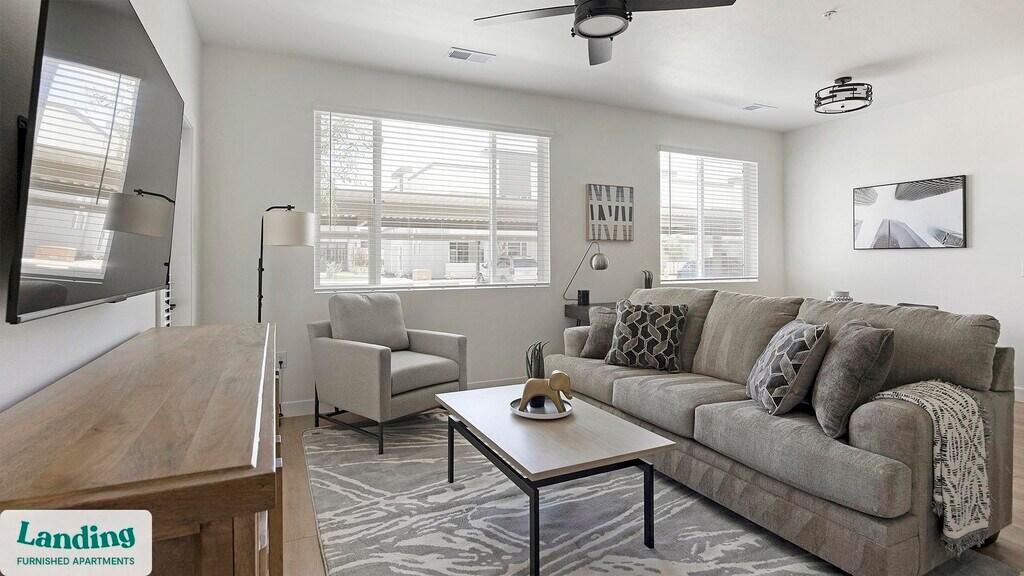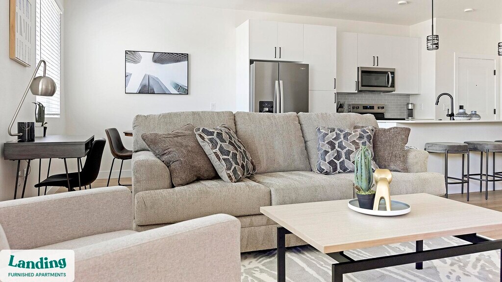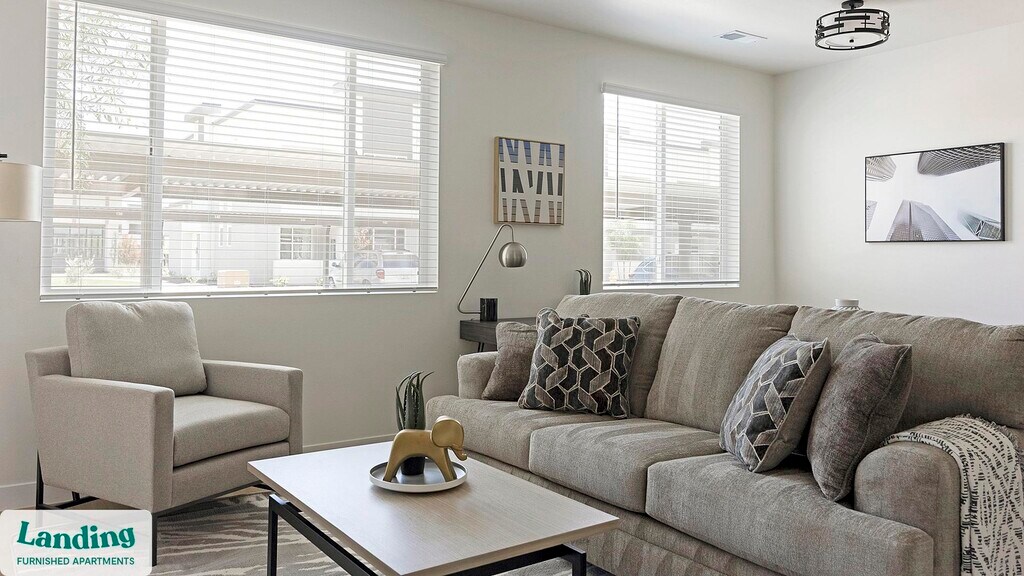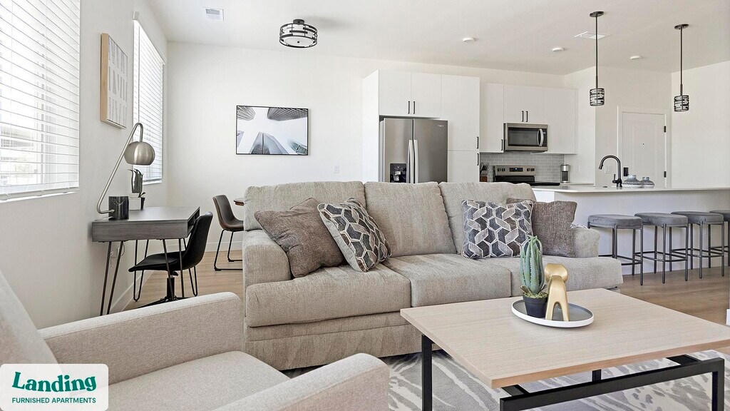 Landing offers flexible lease terms from weeks to months. Please always visit our website or contact us for the latest pricing & availability. Stay longer, save more: 6-Month Minimum base rent: starts at $2085/mo 12-Month Minimum base rent: starts at $1652/mo Landing offers flexible leases across a network of over 35,000 fully-furnished apartments throughout 375+ cities so you can rent on your terms, practically anywhere, and avoid the hassle of paying deposits or application fees. Visit to learn about all the benefits of a Landing membership, see our competitive up-to-date pricing, explore available apartments, take virtual tours, and make reservations online without jumping through traditional rental hoops. Landing's apartments at Solace Casa Grande Crossings are designed for comfortable, easy living, with the ability to stay as long as you like. Experience living with Landing Every apartment is outfitted with all the modern essentials including: custom-designed furnishings, a fully-equipped kitchen with deluxe stainless steel appliances, a gourmet coffee maker, premium linens, Smart TVs, and incredibly fast, reliable internet for working from home. When you live with Landing, you'll enjoy a hassle-free experience with the added benefit of 24/7 access to our dedicated member experience team. Some of the nitty-gritty: a background check and proof of income are required; we're completely smoke-free; bundled utility packages and pricing vary based on length of stay; pet-friendly options available; listed price reflects a 12-month minimum stay.