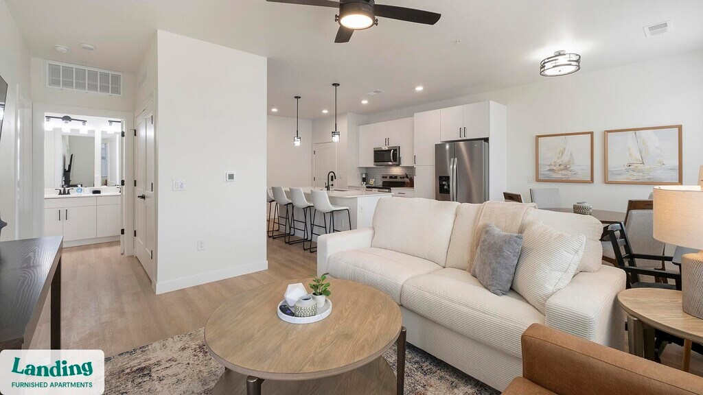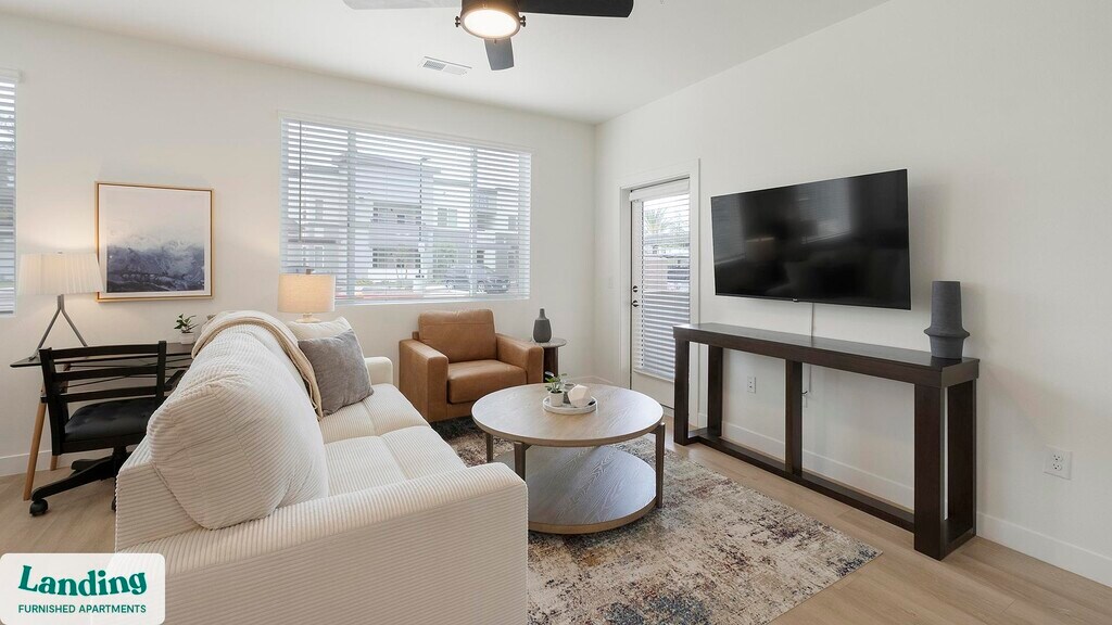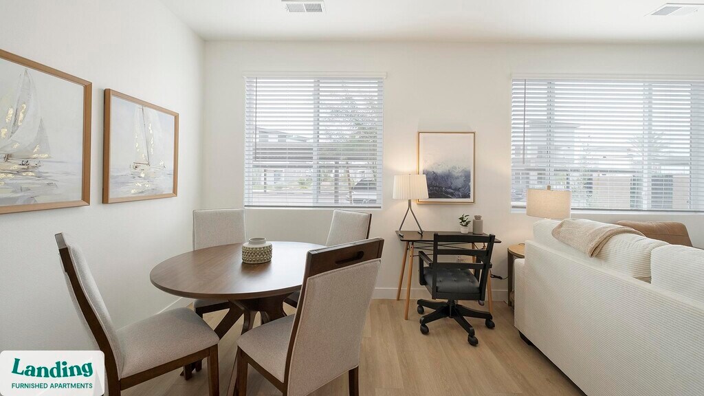 Landing offers flexible lease terms from weeks to months. Please always visit our website or contact us for the latest pricing & availability. Stay longer, save more: 6-Month Minimum base rent: starts at $2000/mo 12-Month Minimum base rent: starts at $1561/mo Landing offers flexible leases across a network of over 35,000 fully-furnished apartments throughout 375+ cities so you can rent on your terms, practically anywhere, and avoid the hassle of paying deposits or application fees. Visit to learn about all the benefits of a Landing membership, see our competitive up-to-date pricing, explore available apartments, take virtual tours, and make reservations online without jumping through traditional rental hoops. Landing's apartments at Solace Casa Grande Crossings are designed for comfortable, easy living, with the ability to stay as long as you like. Experience living with Landing Every apartment is outfitted with all the modern essentials including: custom-designed furnishings, a fully-equipped kitchen with deluxe stainless steel appliances, a gourmet coffee maker, premium linens, Smart TVs, and incredibly fast, reliable internet for working from home. When you live with Landing, you'll enjoy a hassle-free experience with the added benefit of 24/7 access to our dedicated member experience team. Some of the nitty-gritty: a background check and proof of income are required; we're completely smoke-free; bundled utility packages and pricing vary based on length of stay; pet-friendly options available; listed price reflects a 12-month minimum stay.