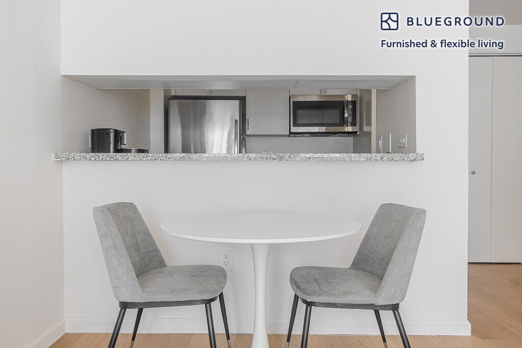 Discover the best of New York, with this one bedroom apartment in Upper West Side with views over the city. It’ll be easy to simply show up and start living in this furnished apartment with its fully equipped kitchen, living room, and our dedicated, on-the-ground support. (ID #NYC1843) The advertised rate of $6,070/month is the lowest available price, based on a 12 month(s) stay with a move-in date of May 12, 2026. Rates vary depending on the duration of stay, season, and other parameters. For exact pricing and additional pricing components, please visit our website and enter your desired move-in and move-out dates. The rate is applicable when billed upfront; it can be higher if billed in multiple payments. Brokers are welcome to reach out. Were you looking for an unfurnished lease? Try Blueground instead and upgrade from unfurnished to furnished living: - Furnished at rates comparable to unfurnished - No setup or furniture costs - save thousands - Move-in ready - save time, just bring your suitcase Designed with you in mind Thoughtfully designed with bespoke finishes, modern furnishings, and a fully equipped kitchen, you’ll enjoy that “I’m home” feeling with this Blueground apartment. Whether you’re lounging in your stylish living room streaming the latest and greatest entertainment on the smart TV or premium wireless speaker, or getting some well-earned rest on the superior quality mattress with fully stocked linens, you’ll fall in love with everything this Upper West Side apartment has to offer. This apartment also offers in-floor laundry. Sleeping arrangements Queen Bed, 63in/160cm Amenities Building amenities unique to this one bedroom apartment include an on-site: - Doorman - Dryer of floor - Elevator - Washing machine on floor - Pets allowed - Playroom Arrival and ongoing support The entire apartment is yours to enjoy! Throughout your stay, you’ll have access to our Client Experience team through the Blueground App. You can schedule additional cleanings, submit maintenance requests, and view our neighborhood recommendations with just a few taps. We’ll share all details upon confirmation of your stay. Ideally Located This furnished property is on the Upper West Side, one of the greenest parts of Manhattan. Nestled between Riverside Drive and Central Park, the area attracts residents seeking a quieter neighborhood. Beautifully maintained brownstones and an abundance of good schools make it a preferred choice for families. Popular cultural attractions include the Natural History Museum and Lincoln Center. In addition, Columbia University and Barnard College are at the north end of the neighborhood and about a 15 minute ride on the subway. Other things to note Building amenities may have an extra cost. This Blueground apartment has flexible lease options, allowing you to book it for one month, a year, or more. Pets are welcome, though weight limits and breed restrictions apply and may incur fees. Brokes CYOF. We take great pride in ensuring every photo displayed is shot in our own units with our actual furnishings. That said, we regularly refresh our decor and furniture arrangement, which may differ from what’s pictured. [SI]