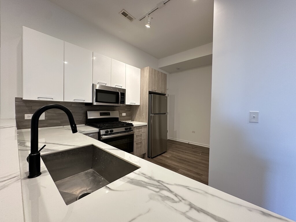 We now offer virtual video tours of all of our apartments! Schedule a virtual tour and rent this apartment from the comfort and safety of your home! Apply online! Valuable three bedroom, two bathroom in the South Loop features modern eat in kitchen with Italian cabinetry, stainless steel appliances, dishwasher, microwave, large living room, balcony, tall ceilings, track lighting, hardwood floors, large master suite with great walk in closet space, marble master bathroom with double vanity, central heat and air, in unit laundry, pets welcome, and heated garage parking is available. Building features 2000 square foot rooftop deck, elevator, bike room, pet wash station, and fitness room! Won't Last Long!