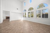 Welcome to 2556 Pearblossom, located within the distinguished gated community of The Aspens at Turnleaf. This residence features premium vinyl plank and tile flooring on the lower level, high ceilings, plantation shutters, recessed lighting, and numerous windows that provide abundant natural light. The property offers four bedrooms and three bathrooms, in addition to an upstairs bonus loft area equipped with a built-in desk. The primary suite is spacious and includes two separate walk-in closets. The en-suite bathroom is well-appointed with triple vanities, a sunken tub, a large separate shower, and a private toilet room. Upstairs, there are two additional bedrooms, a full bathroom with dual vanities, a combined shower and tub, a separate toilet room, and a designated laundry room with a sink. One downstairs bedroom is accompanied by a full bathroom with a walk-in shower. The kitchen is equipped with an island, granite countertops, custom backsplash, double ovens, and a microwave. Adjacent to the kitchen is a family room featuring a fireplace and an entertainment niche. The formal living and dining rooms are open and bright, benefiting from ample windows and elevated ceilings. Additional amenities include an attached two-car garage plus a separate one-car garage. The professionally landscaped backyard offers a built-in BBQ island for outdoor entertaining. Residents of the Turnleaf community enjoy access to an association pool, children’s play area, manicured green belts, and walking trails. The home is conveniently situated near the award-winning Beechwood Pre K-8 School and is within walking distance to the Fullerton Sport Complex. This property is available and ready for occupancy.